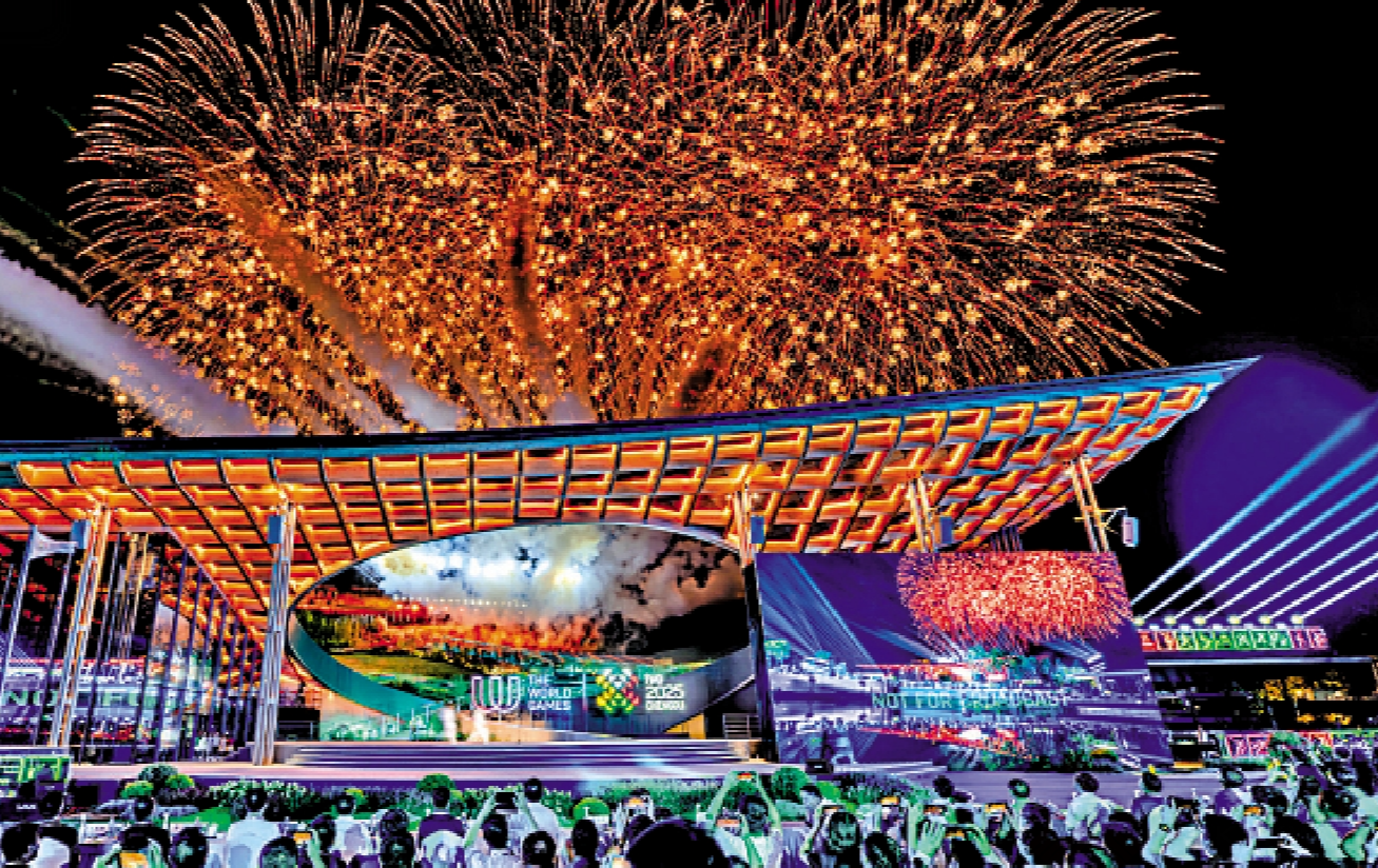 大公報綜合新華社、中新社報道,成都世運會閉幕式場地依託成都世園會「國際友誼館」既有場景,既充分利用現有城市空間,踐行「節儉辦賽」原則,又貼合「公園城市」的生態理念。生態綠色與花園錦繡同寫詩意,多元共生與家園友愛共築美好。