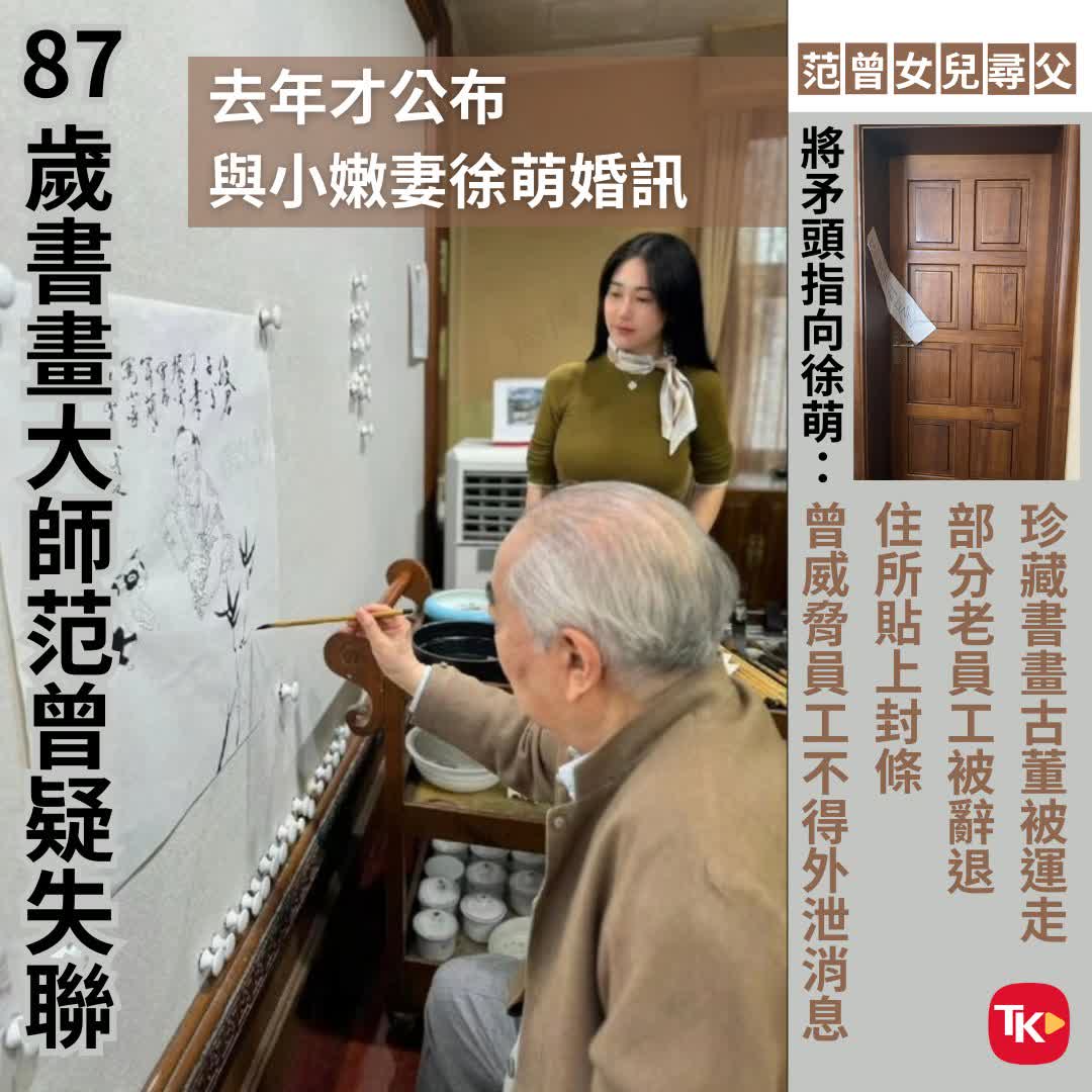 大公文匯網報道,8月16日,已87歲高齡的中國當代書畫大家范曾相關傳聞登上微博熱搜。當晚,范曾女兒範曉蕙在個人微博發布聲明,稱父親被其妻子徐萌帶離住所後失聯,住所被貼封條,庫房珍品被搬走,部分老員工被辭退,且徐萌曾威脅員工不得外泄消息。