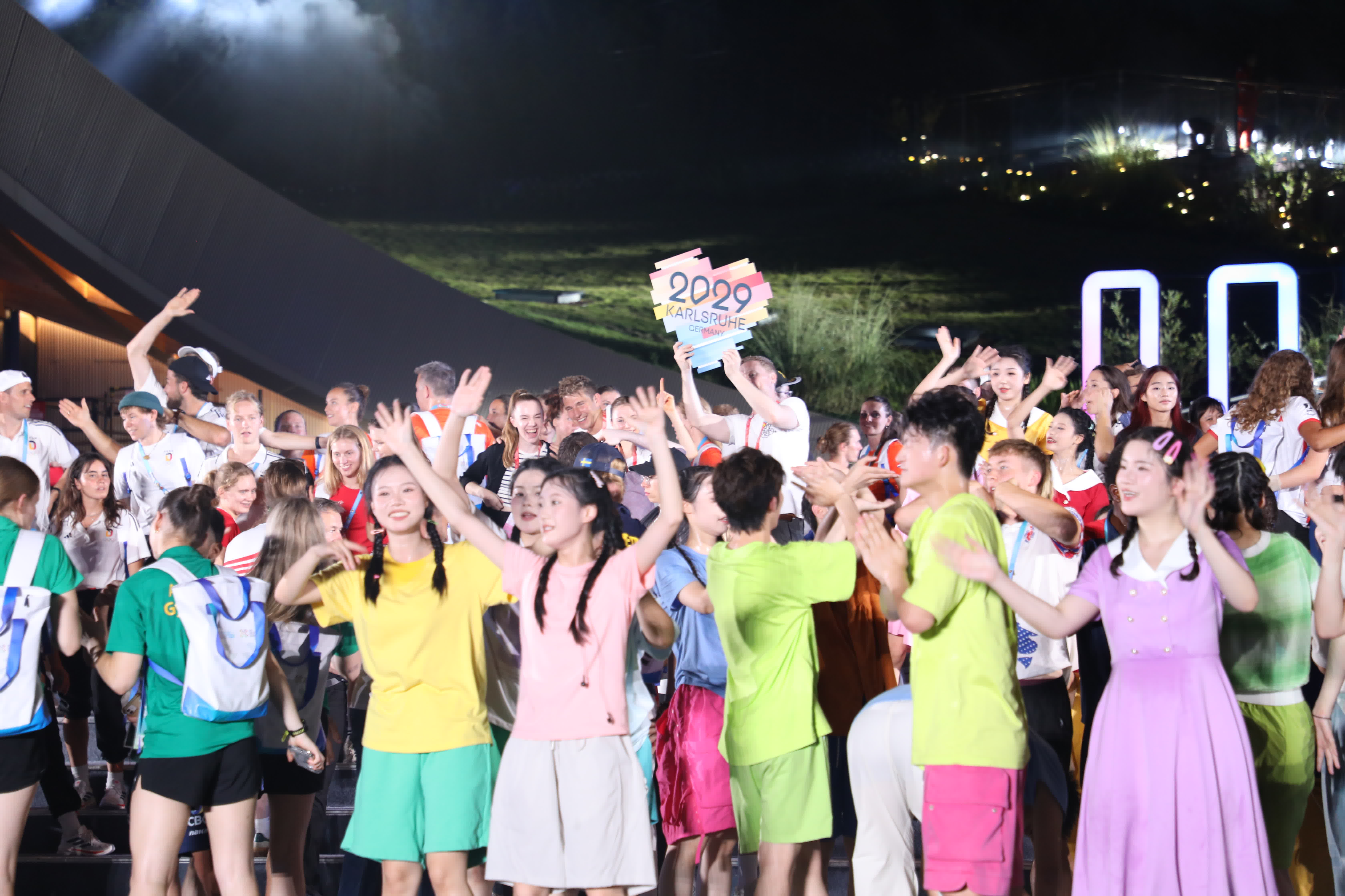 20時,伴隨着成都世運會回顧視頻,濃縮了11天賽事高光與人文記憶的精彩瞬間一一重現。以世運會會徽圖案的字母「W」為首字母,組成We、Wish、Wonderful、World等主題詞,串聯起來自116個國家和地區的6679名運動員、隨隊官員、技術官員以及志願者、觀眾等的美好回憶。