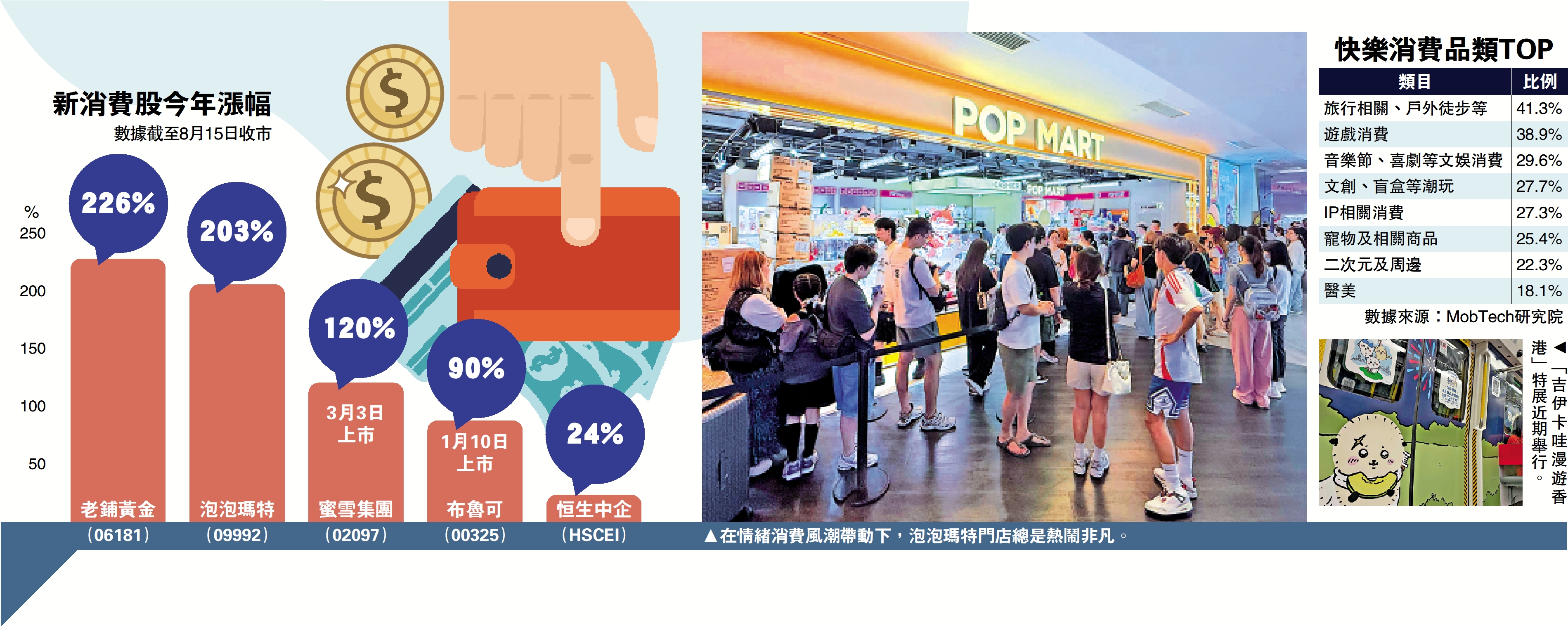 麥肯錫全球研究院日前報告指出,中國消費者正開始走出低谷,邁入接受並適應「新常態」;在富裕城鎮消費者中,有明顯趨勢將更多預算投入無形的服務及體驗上,以獲得快樂和個人成就感。新晉股王泡泡瑪特(09992)或為典型案例,透過「開盲盒」的期待與驚喜,令情緒價值成為商品的附加賣點,從而創造令市場為之振奮的業績。