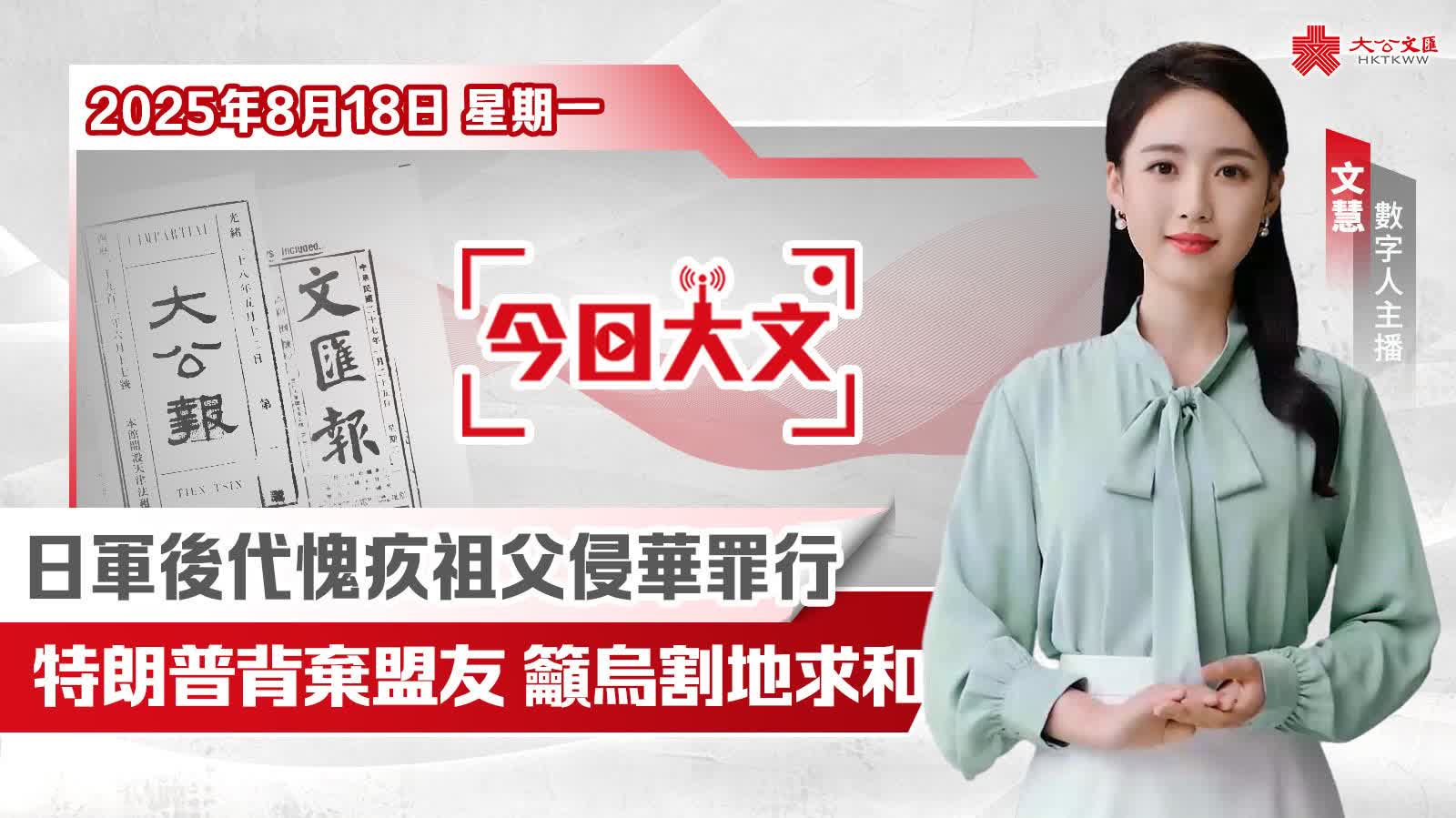 今天是2025年8月18日(星期一),大公文匯網與您速覽報紙看點。