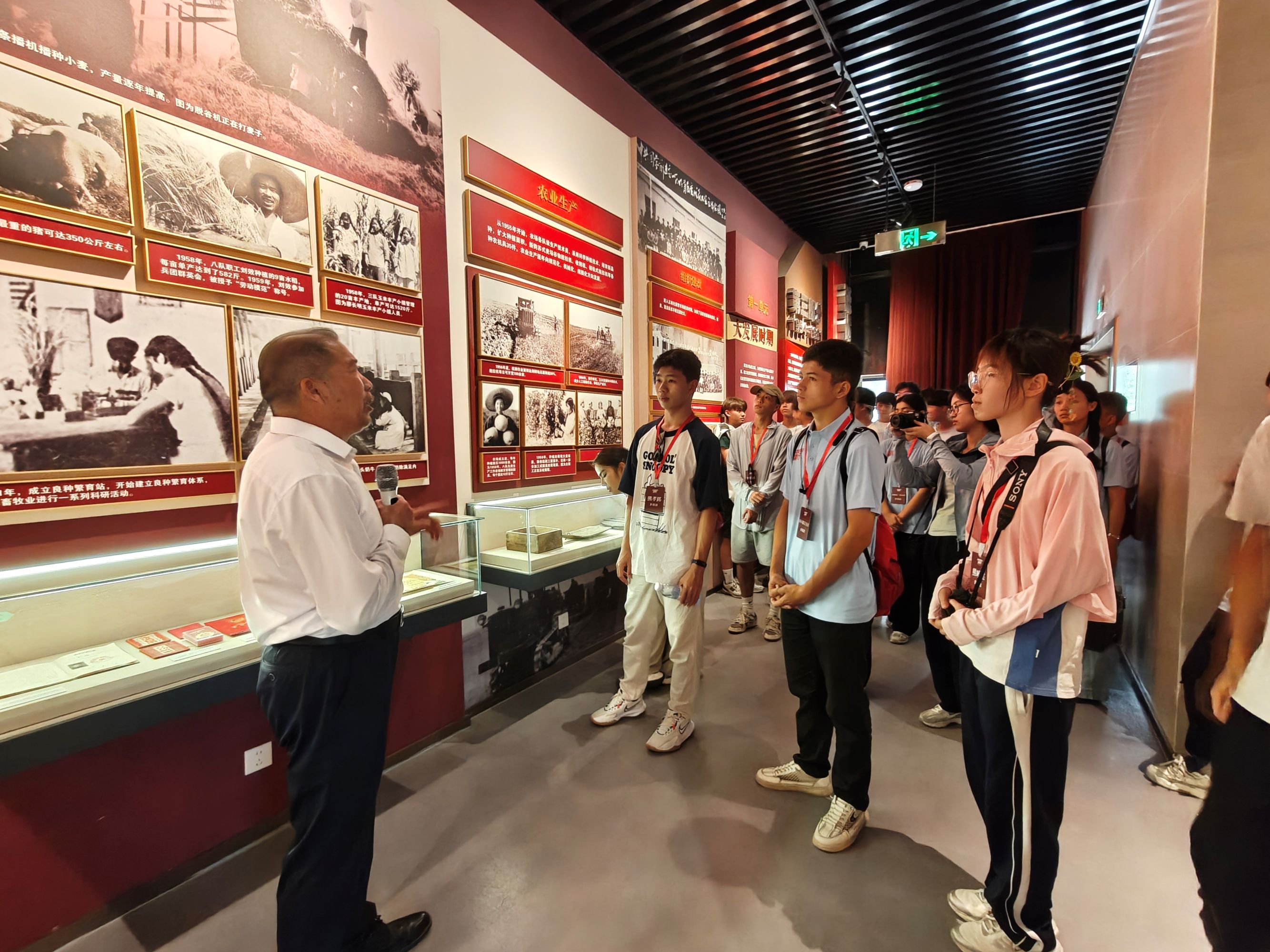 在草湖軍墾第一犁館,草湖項目區黨委宣傳文化部常務副部長任新農結合展陳,向青少年們系統講述了新疆生產建設兵團四十一團的奮鬥歷程——從解放戰爭時期的英勇作戰,到屯墾戍邊時的艱辛開拓,再到社會主義現代化建設中的蓬勃發展。香港青年張安邦沉浸式感受軍墾文化後深受觸動:「過去完全不了解軍墾歷史,現在真切感受到解放軍的偉大,他們的動人故事,在我心底留下了難以磨滅的深刻印象。」