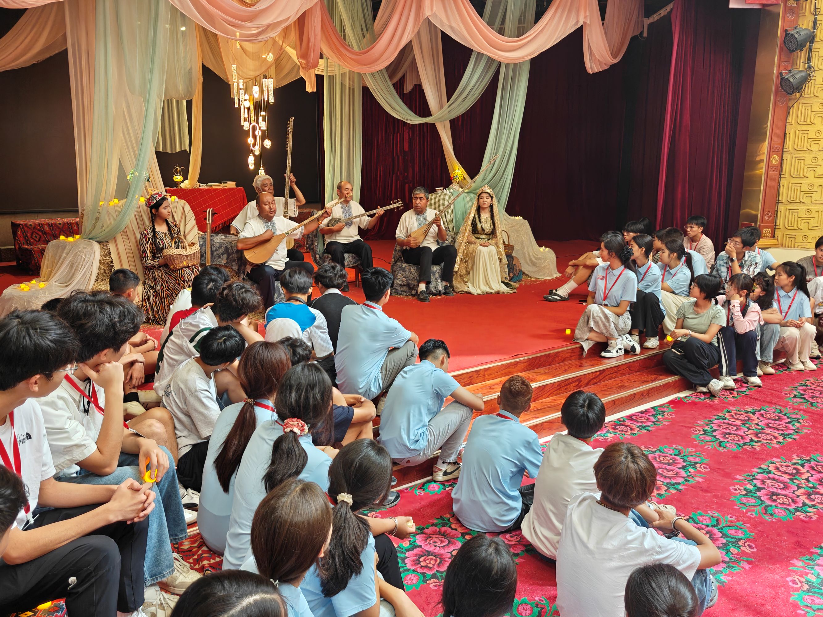 作為「十二木卡姆的故鄉」,莎車縣的木卡姆文化讓粵港澳青少年沉醉。「沒想到當地對傳統藝術保存得這麼好,我甚至此前從未聽說過莎車,來到這裏才感受到十二木卡姆的魅力。」 香港青年何澤銘感慨道。「十二木卡姆」 是中華文化瑰寶,有 「東方音樂文化一大奇跡」 之稱,2005年入選聯合國人類口頭和非物質文化遺產,2006年列為國家級非物質文化遺產。其由明朝阿曼尼莎整理為12部大套曲,融合多種藝術形式;新中國成立後,在周恩來總理關注下,萬桐書對其錄音整理,為傳承奠定基礎。如今莎車縣擁有1名國家級、1名自治區級及23名縣級傳承人,2021年更獲「民間文化藝術之鄉」稱號。澳門青年吳卓然也直言:「學到很多新知識,這裏的音樂旋律優美,更讓我體會到音樂無界、文化互通的魅力。」