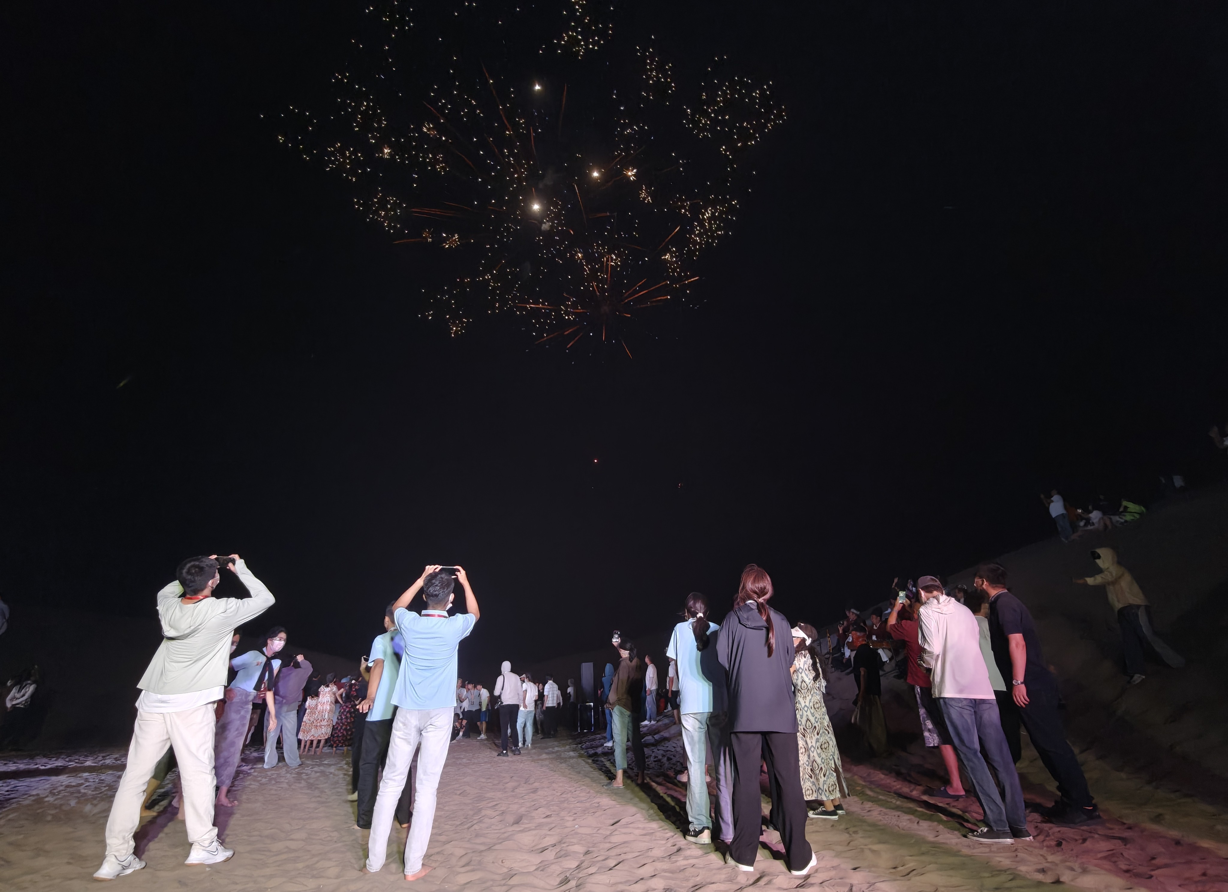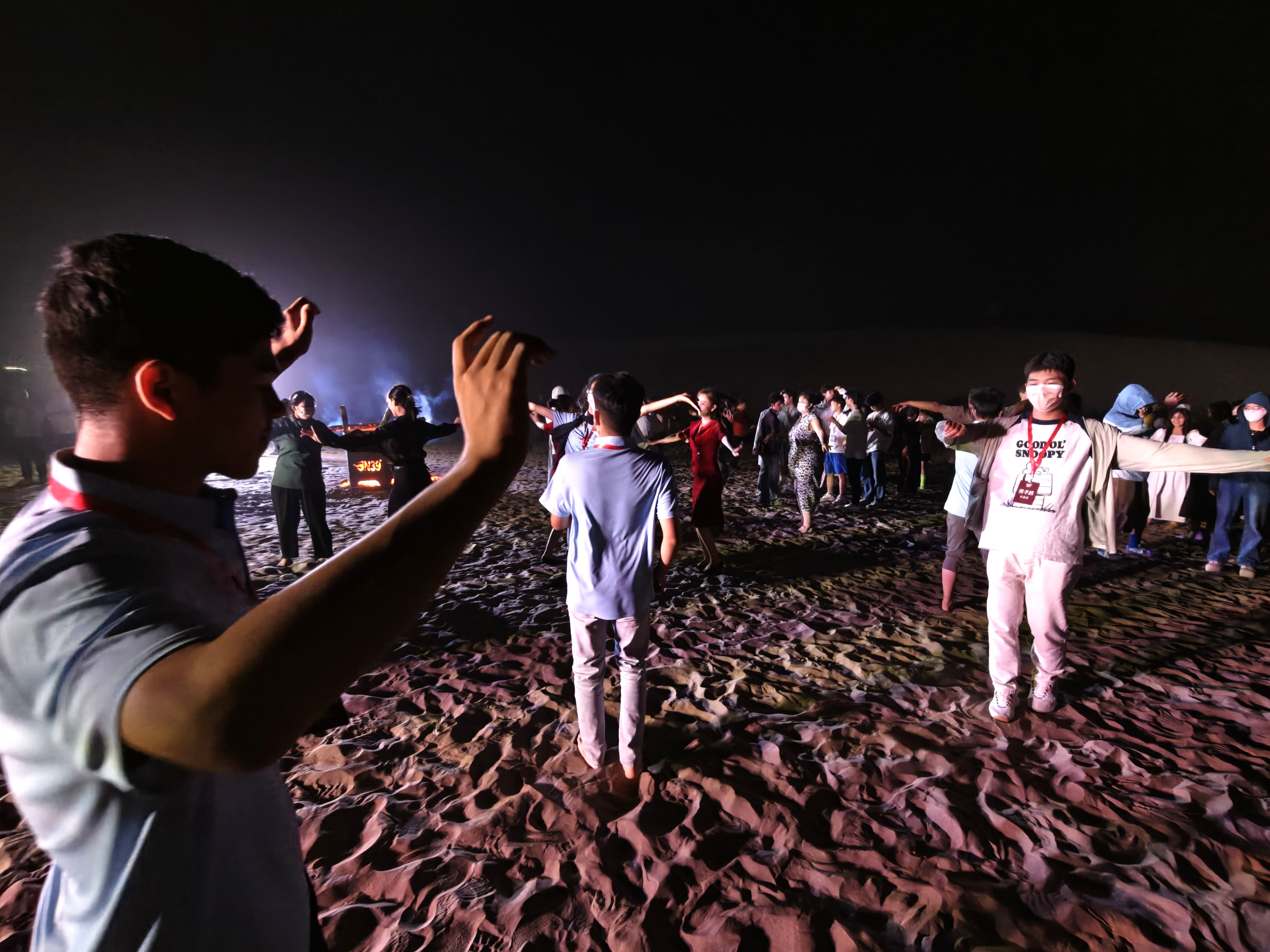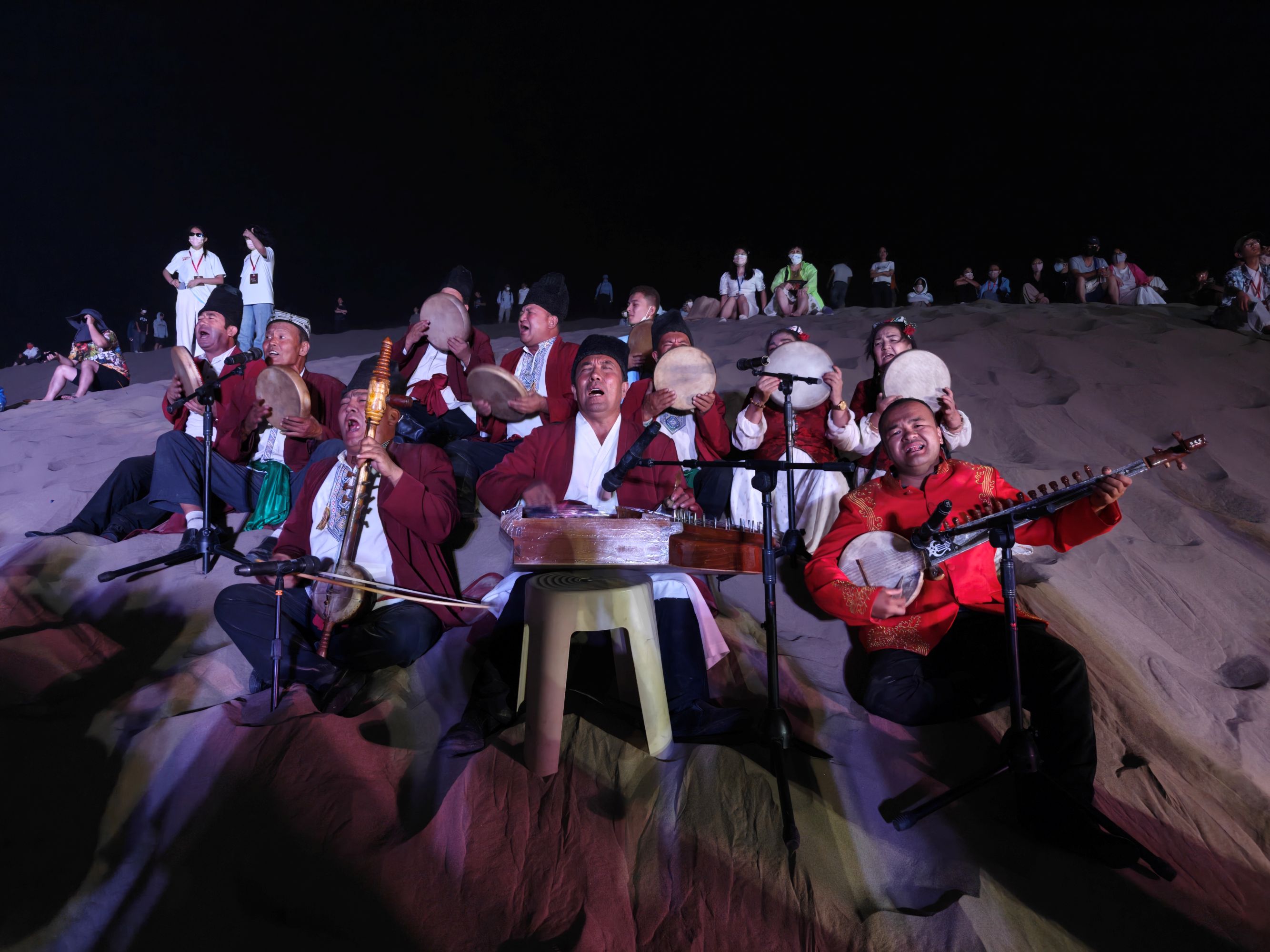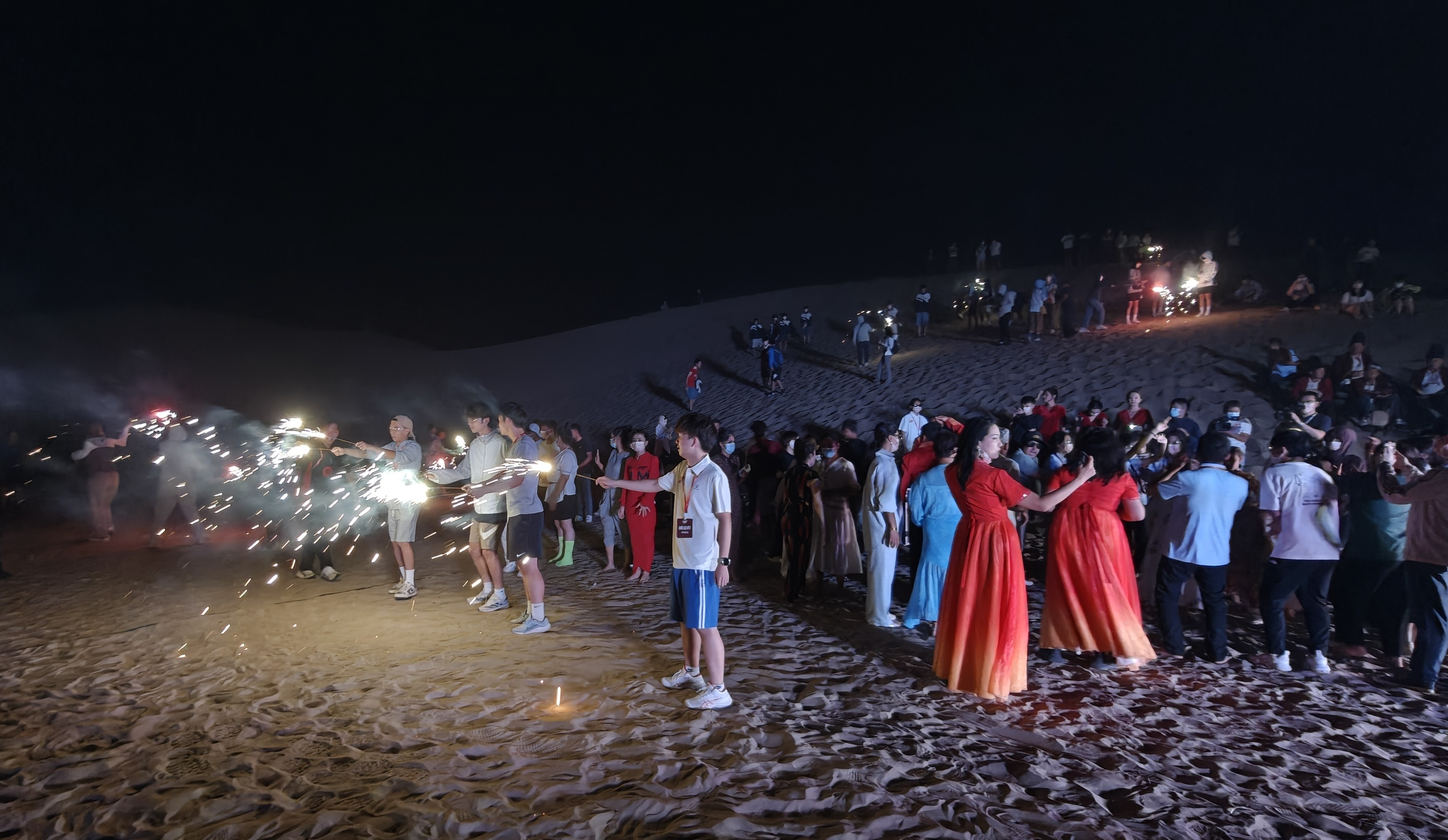 同時,在8月17日晚,新疆塔克拉瑪乾N39°沙漠旅遊景區沙丘間,一簇篝火燃起,橙紅的火焰 為「粵港澳青少年新疆行」沙漠篝火晚會啟幕。粵港澳青少年與新疆當地群眾圍火而聚,載歌載舞。晚會特邀新疆民間藝人和當地群眾參與,希望通過面對面互動,讓粵港澳青少年既見沙漠壯闊,也觸摸新疆人的真誠,在共舞中品民俗、交流中懂多元,加深對祖國多民族文化交融的理解。