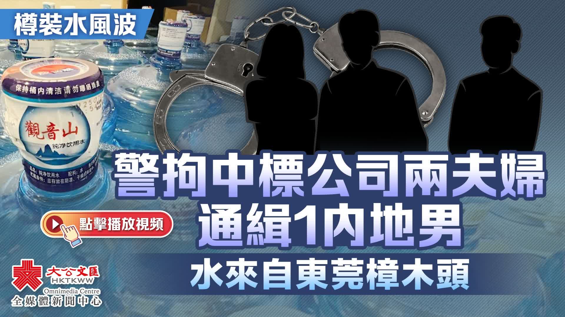 (大公文匯全媒體 記者 周傾莞、盧葦)政府物流署日前宣布,未能信納為港島和部分離島的政府辦公室供應「鑫樂觀音山」桶裝飲用水的鑫鼎鑫商貿有限公司可繼續履行合約,即時終止有關合約,並將事件交予執法部門調查。警方及海關今日(18日)舉行聯合記者會,公布就事件拘捕一男一女,兩人為夫妻關係,分別為涉案公司董事及股東。警方亦正通緝一名涉案內地男子。
