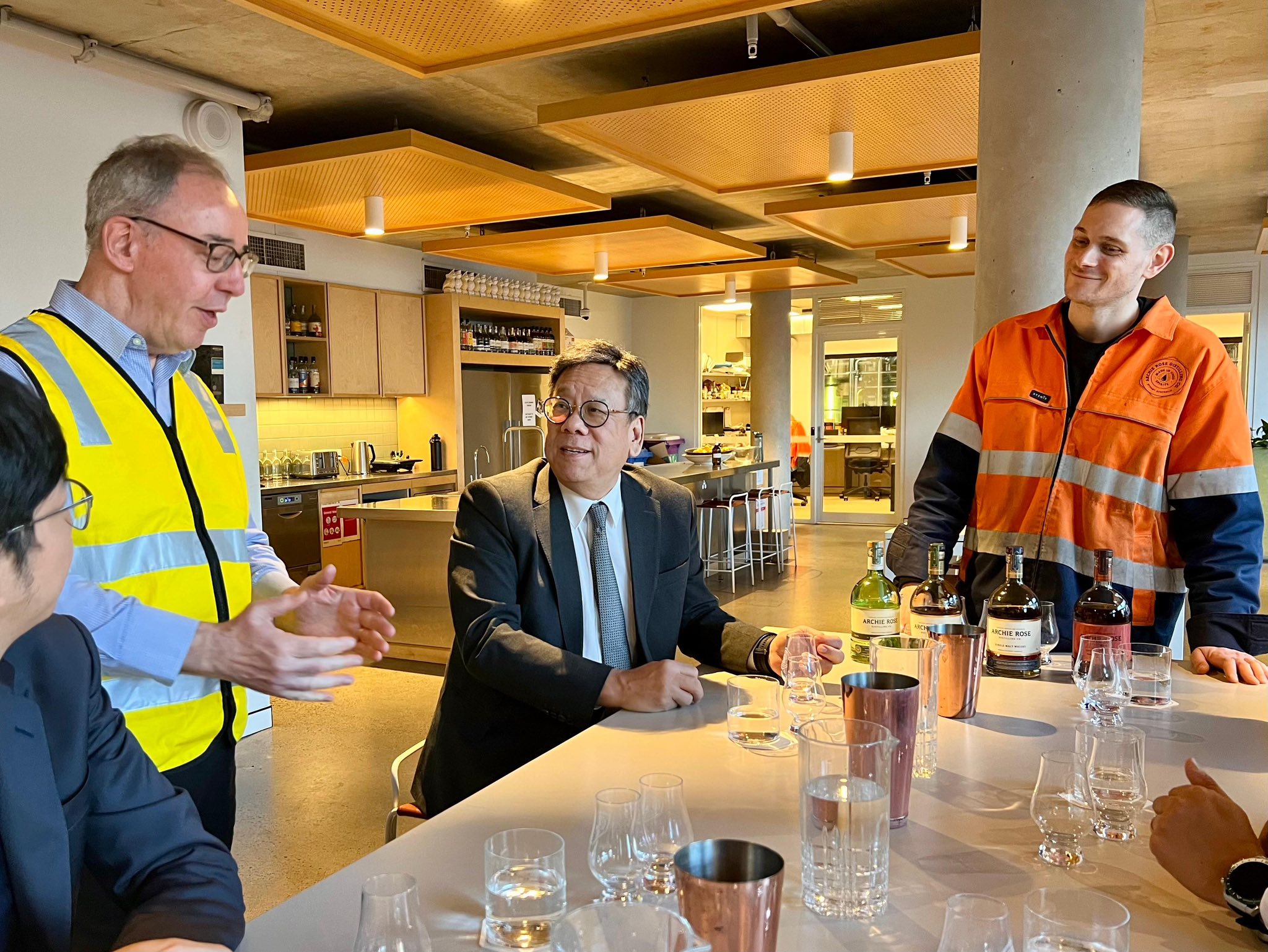 他亦與Australian Distillers Association的代表會面,介紹香港調低烈酒稅以推動烈酒貿易,期望更多澳洲優質烈酒產品能把握商機。他並到訪一間蒸餾廠,了解蒸餾過程和澳洲烈酒的發展。