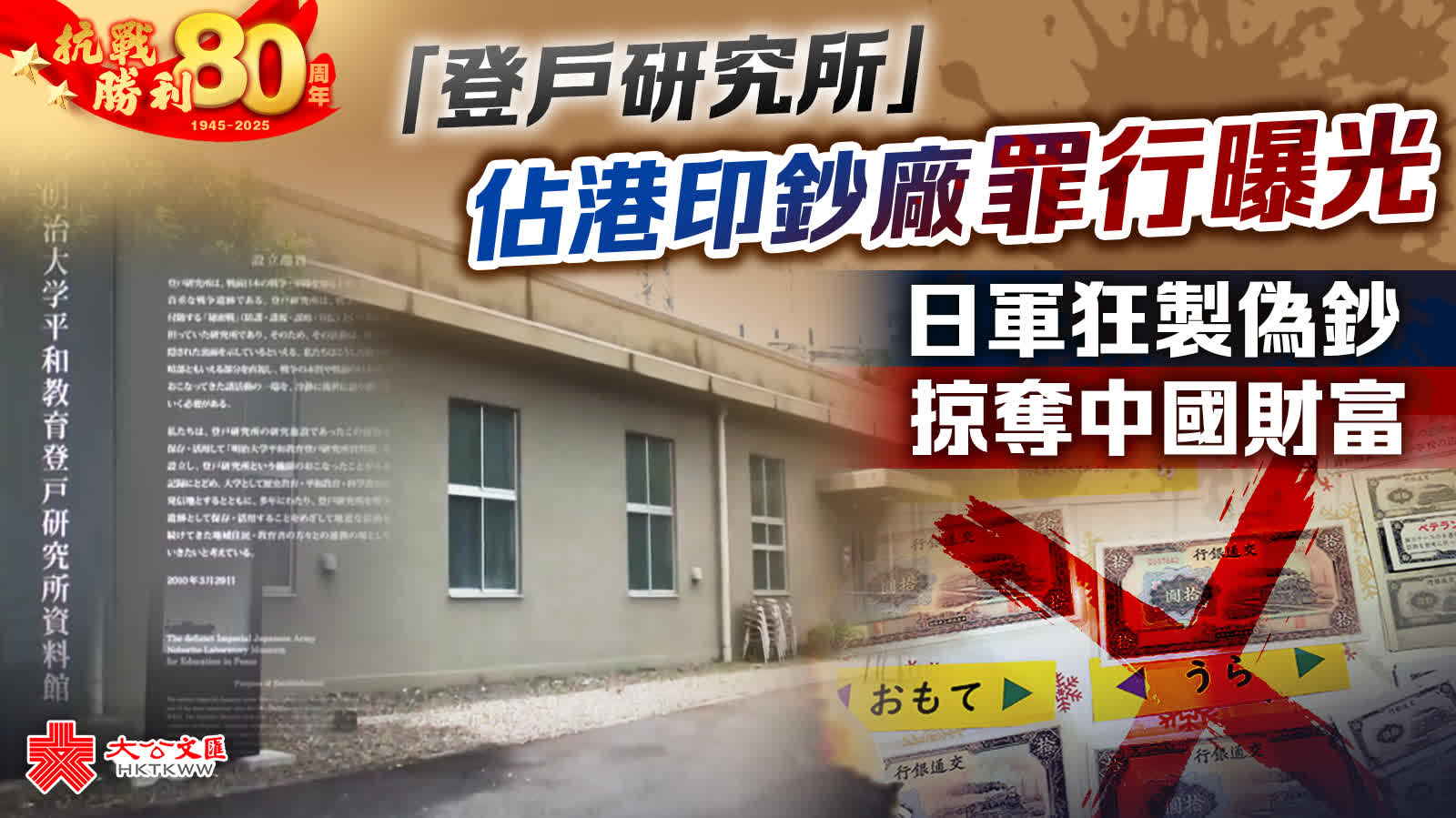 大公報記者直擊位於東京、二戰時為日本研發偽鈔技術的「登戶研究所」。資料顯示,該研究所偽造價值約45億元日圓的中國偽鈔並成功流入市面,日軍曾佔據香港的印刷廠製造偽鈔,同時在金融上摧毀中國。