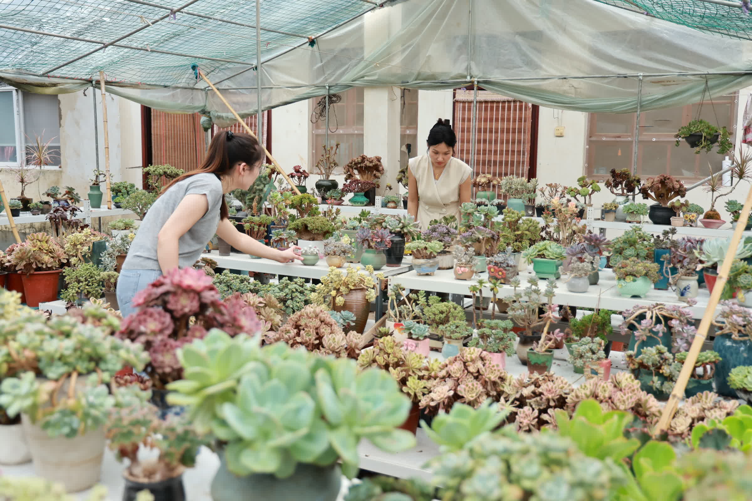 牛遠景對多肉種植始於妻子的愛好,在妻子的影響下自己也慢慢的喜歡上了多肉,隨着培育的品種越來越多,後來乾脆把自家院騰出兩間屋,加上寬敞的院子,建立起了自己的多肉「工廠」,愛好就這樣一步步的變成了事業。為了讓多肉造型更好看,牛遠景還跟着網上教程自學了多肉盆景製作,再加上自己的巧思,經他手製作的盆景受到很多顧客的喜歡。米其多肉園佔地面積雖不大,只有兩畝地,但多肉品種就有800多種,價格從十幾元到上千元不等,深受市場青睞。