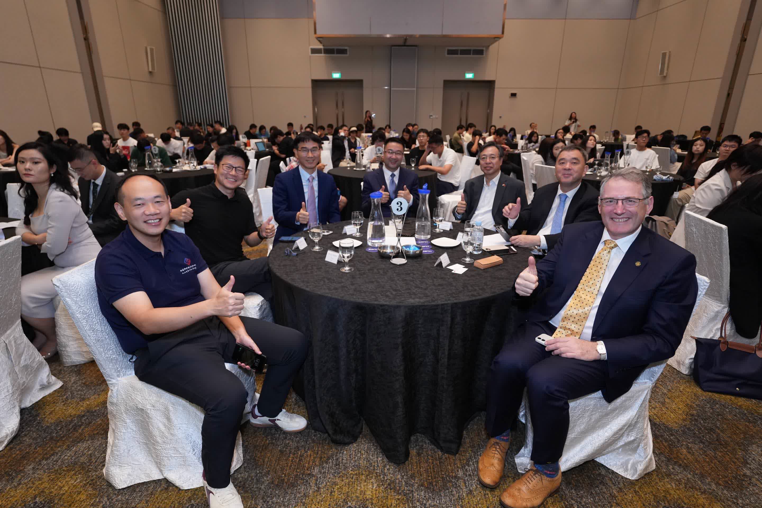 中國駐新加坡大使館教育處公使銜參贊韓駿發表致辭。他表示,新加坡與香港同為國際化城市,具有在科技、金融領域深度合作的天然優勢。香港近年來通過推出「高端人才通行證計劃」等政策, 吸引全球頂尖人才,為其在人工智能、金融科技等領域的創新發展提供了重要支撐,期待進一步深化中新兩地的人才與科技合作。