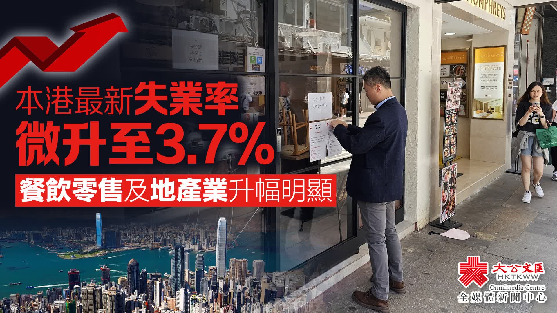 大公文匯全媒體報道,政府統計處今日(19日)公布,本港最新失業率為3.7%,微升0.2%,就業不足率維持1.4%的水平。