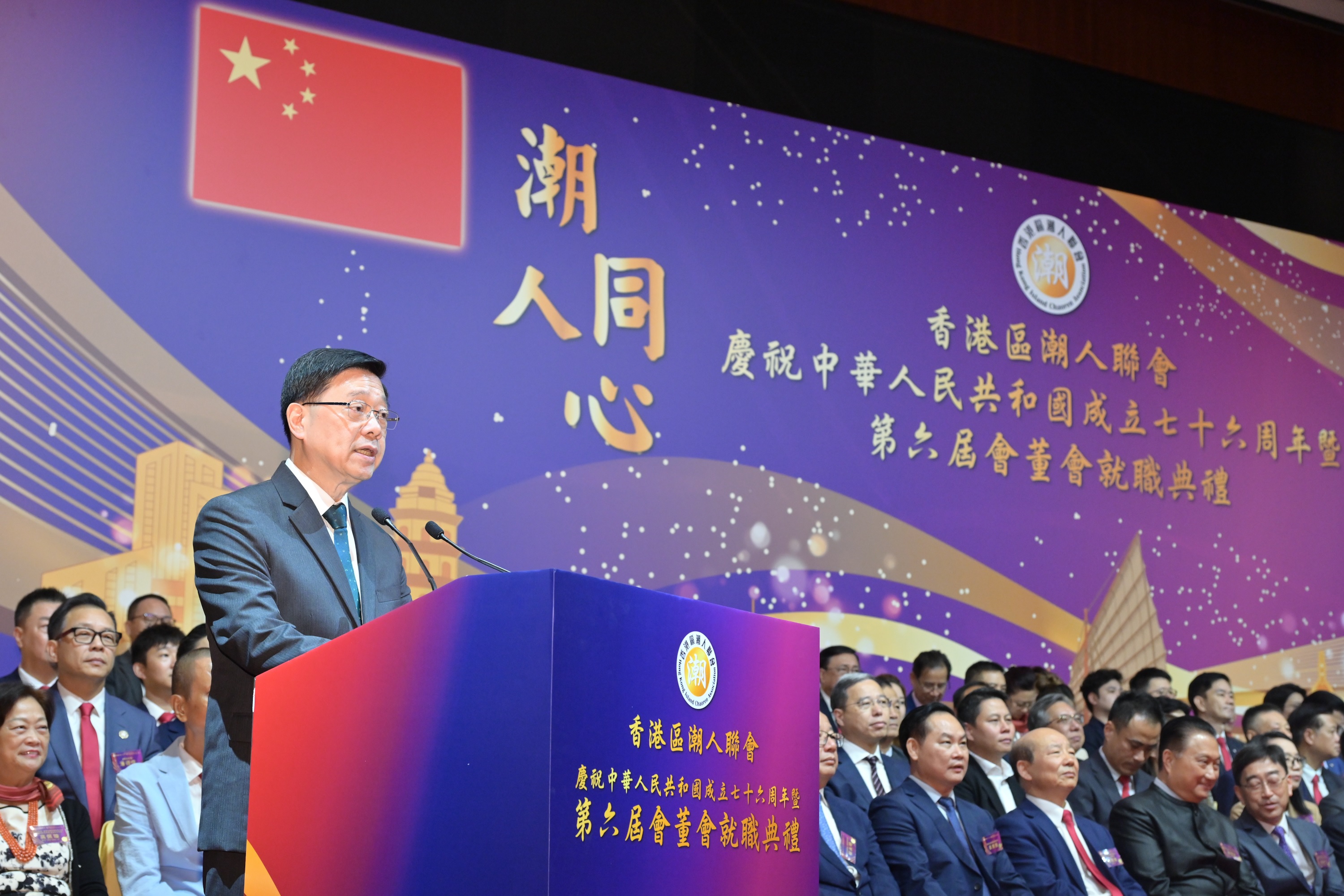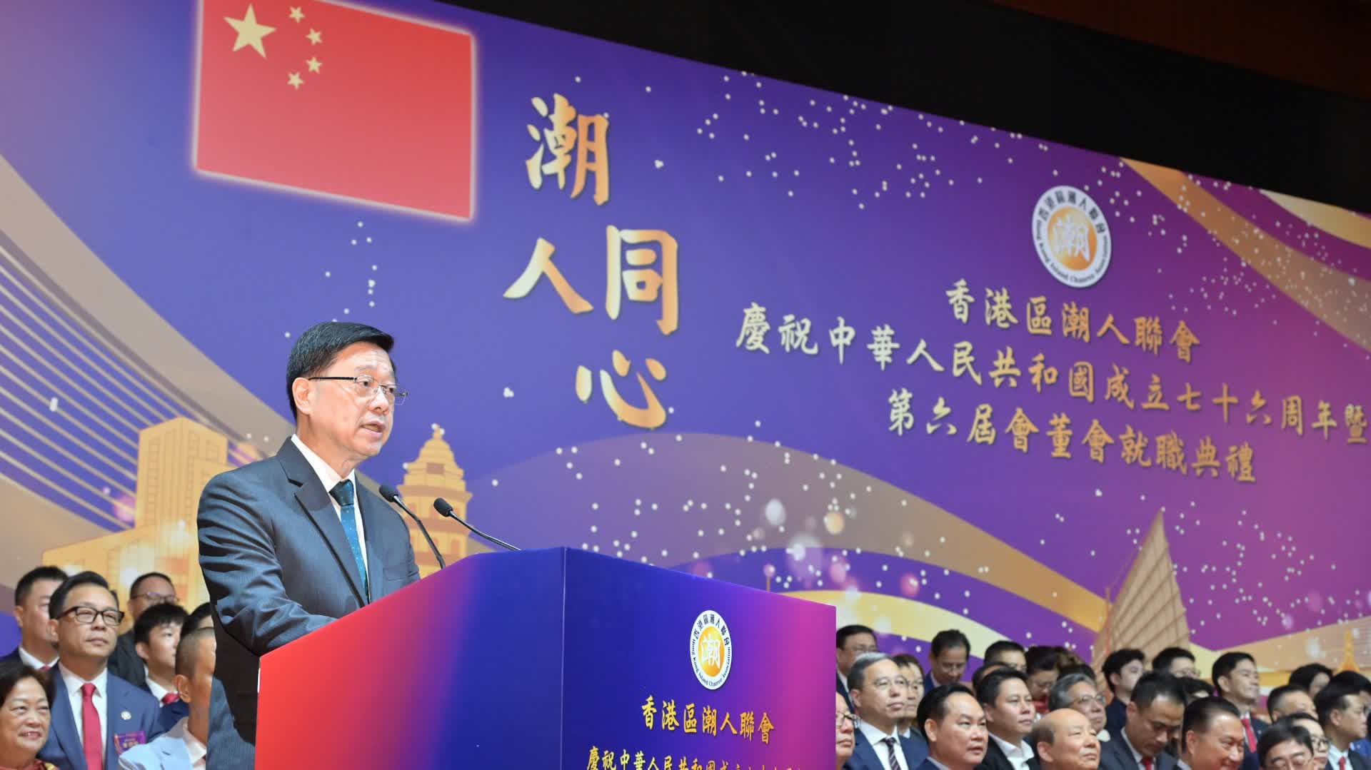 大公文匯全媒體報道,行政長官李家超今日(19日)出席香港區潮人聯會慶祝中華人民共和國成立76周年暨第六屆會董會就職典禮並致辭。