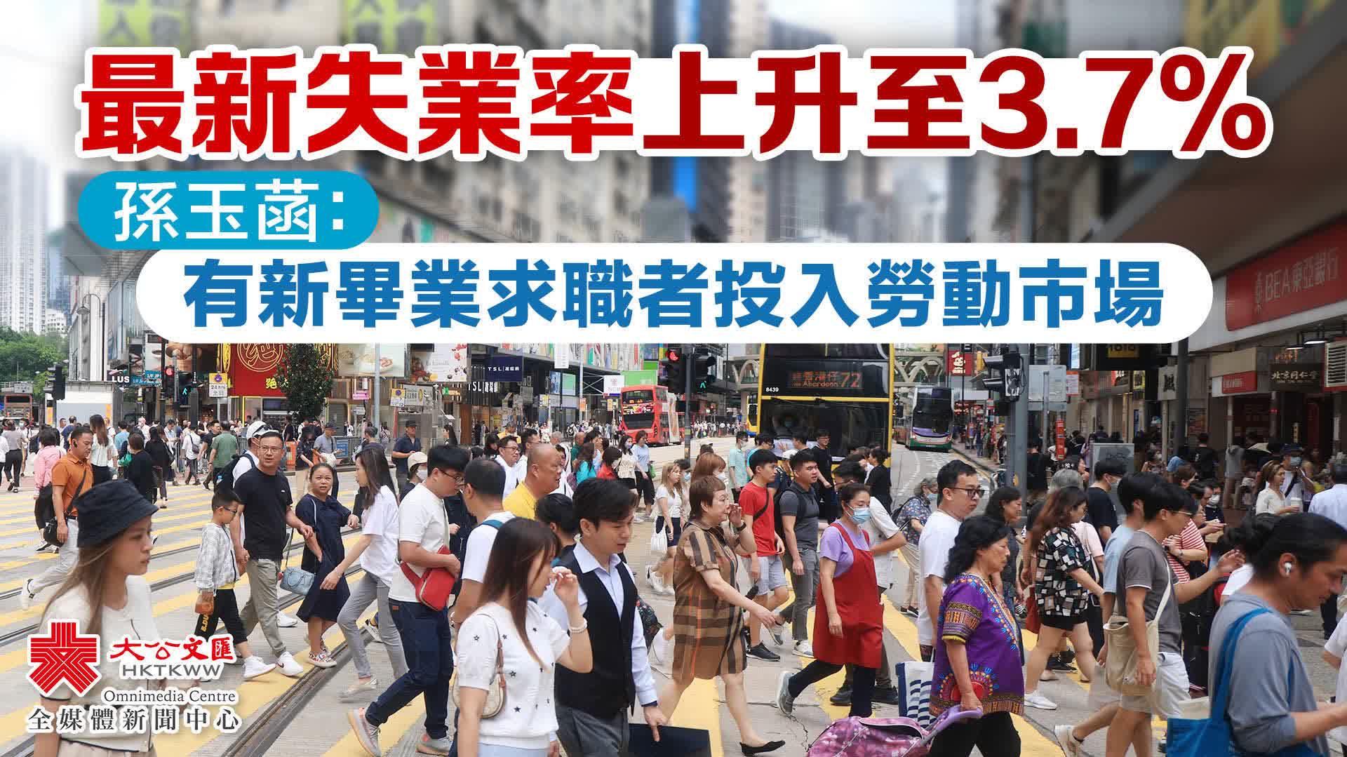 就最新失業率上升0.2個百分點至3.7%,孫玉菡表示,如果細看數字,可見總就業人數增加了約14000人。此外,由於進入7月份,會有許多新畢業的求職者,因此求職人士於同一時間亦增加了約22000個。雖然兩者都有增加,但若計算比率,就出現些微的升幅。