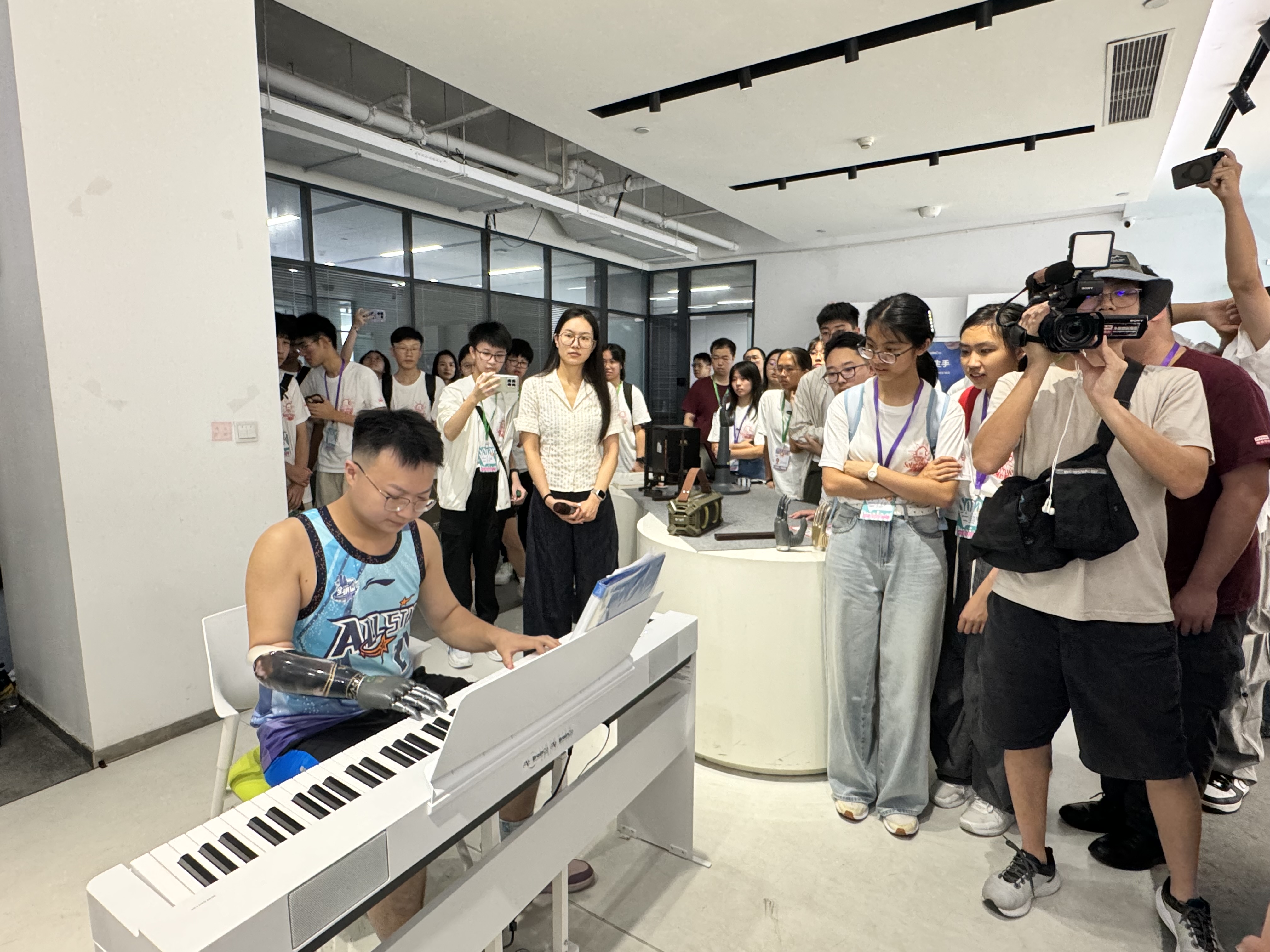本次活動中,香港青少年們走進了「杭州六小龍」企業之一的強腦科技,觀看殘障人士藉助智能仿生手進行書法創作與演奏電子琴,增加了對智能仿生手、智能仿生腿等腦機接口技術前沿成果的認識。