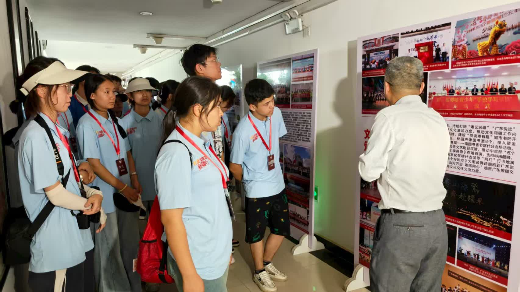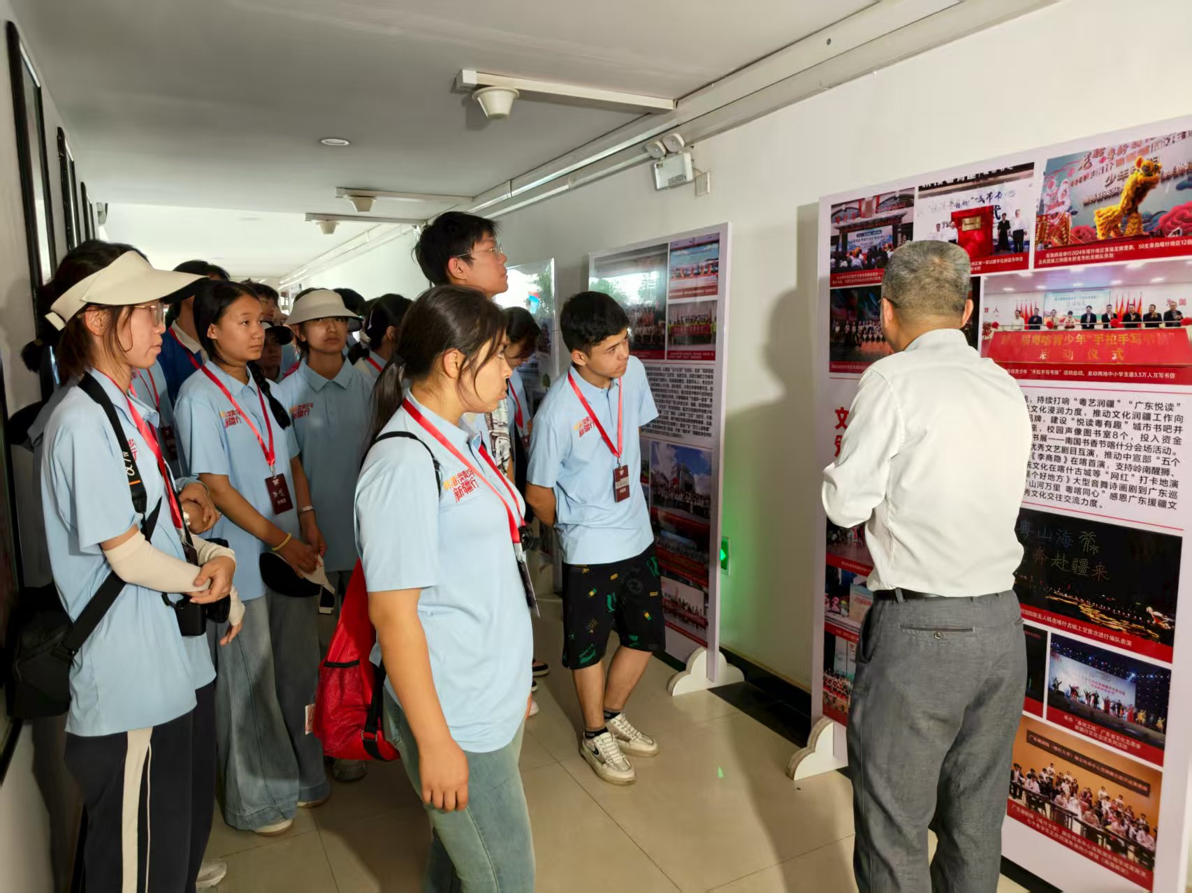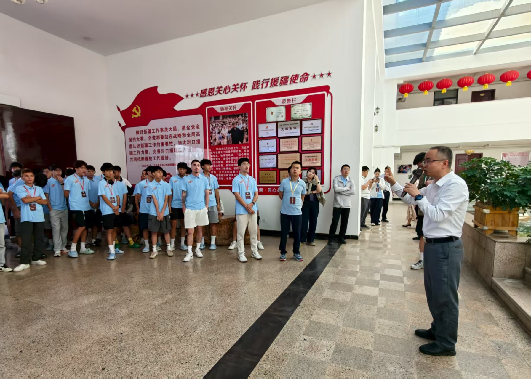 在參觀廣東援疆指揮部的成果展廳時,學生們了解到援疆工作涵蓋民族交往交流交融、文化潤疆、智力援疆、產業援疆和民生援疆五大板塊。從喀什新建的籃球公園、中山大學附屬第一人民醫院,到中吉烏鐵路和中歐班列的開通,廣東援疆在醫療、教育、交通、產業等多個領域的貢獻令人矚目。同時,英歌舞、舞龍舞獅等廣東文化元素在新疆落地生根,進一步促進了兩地文化交流。展廳內的紅旗拉普國門和穆士塔格峰的圖片,更讓學生們感受到新疆作為祖國西部重要門戶的獨特魅力。
