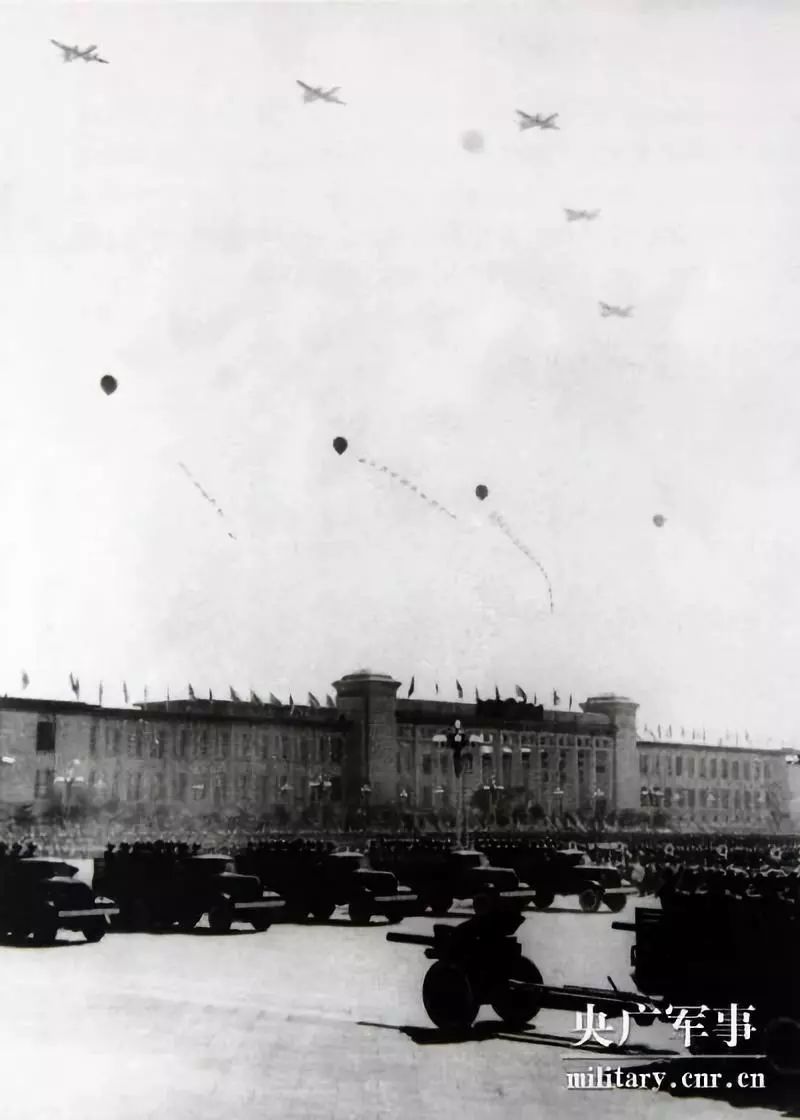 在開國大典的尾聲,新成立的中國人民解放軍空軍編隊以威武雄姿飛越天安門廣場上空,完成了具有歷史意義的空中分列式。這次飛行不僅標誌着人民空軍的正式誕生,更向世界宣告:中國從此擁有了自己的空中力量,並將以嶄新的姿態屹立於世界民族之林。