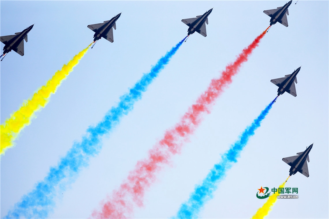 1999年國慶50周年閱兵,我國空中力量以全新面貌亮相。出動的132架先進戰機均為國產,涵蓋9個機種、15個機型,包括「飛豹」戰鬥轟炸機、殲8殲擊機、直9直升機等。除了裝備的更新之外,此次閱兵還首次實現了三軍航空兵聯合受閱的歷史性突破:打破以往僅由空軍航空兵受閱的傳統,將海陸空三軍的航空兵組成聯合空中編隊,分門別類地展示不同類型航空兵們的專用飛機。