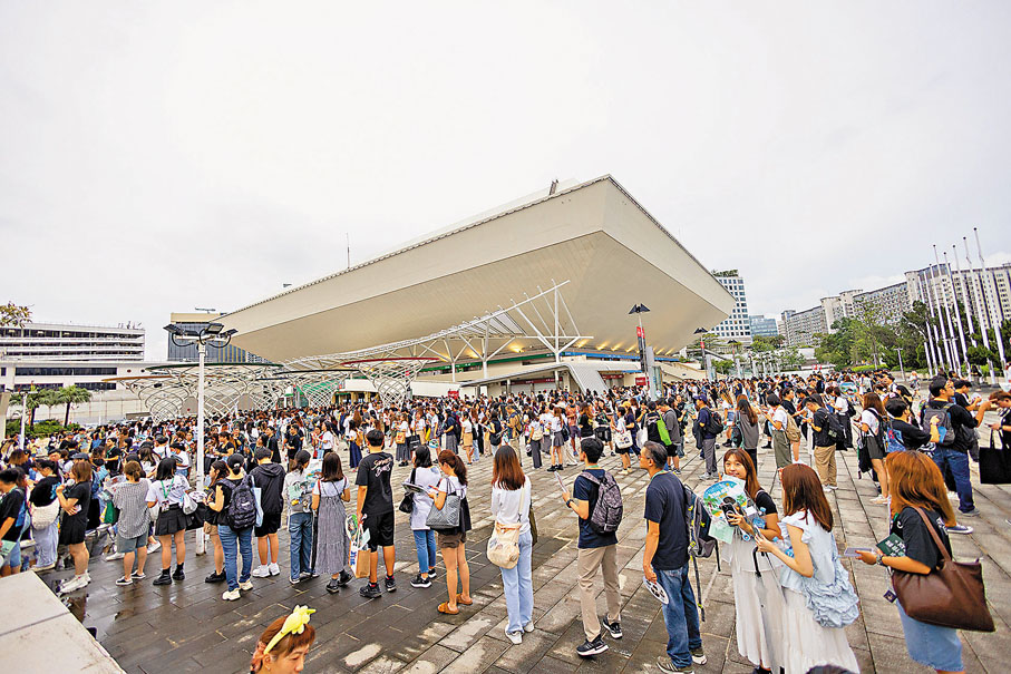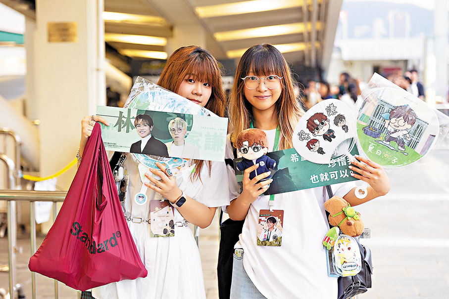 歌迷劉小姐笑言:「剛剛買周邊已貴過騷飛。」不少粉絲更於場外自發交換自製的應援周邊,歌迷阿木、二零與Kitty聯手設計和製作了貼紙、小卡及鑰匙扣等紀念品免費派發。歌迷Cutie準備1,400張手幅分日派發,昨日更準備了500張手幅,粉絲大排長龍領取,有粉絲向香港文匯報記者展示收穫,她透露下午三點已出現交換禮物的人潮。