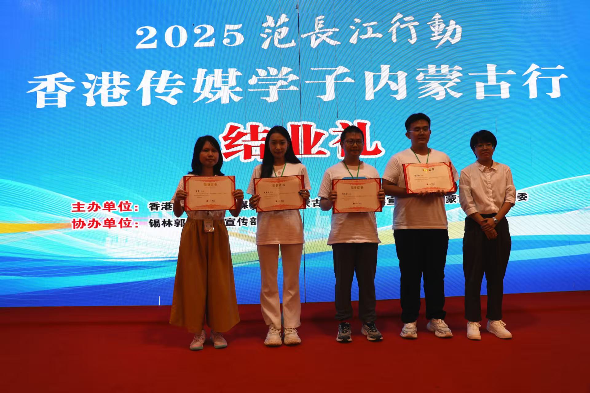 (大公文匯網 記者 喬輝、王月)八月的錫林郭勒草原,牧草豐美,牛羊成群。8月19日,「2025范長江行動—香港傳媒學子內蒙古行」結業禮在內蒙古錫林郭勒盟舉行,標誌着這場為期9天的跨地域文化交流與採訪實踐活動順利收官。來自香港大學、香港科技大學、香港理工大學、香港浸會大學等院校的18名傳媒學子,與內蒙古當地院校的10名學子攜手同行,足跡遍布烏蘭察布、呼和浩特、錫林郭勒盟三地,在行走中觸摸祖國大地的脈搏,在交流中凝聚青年同心的力量。