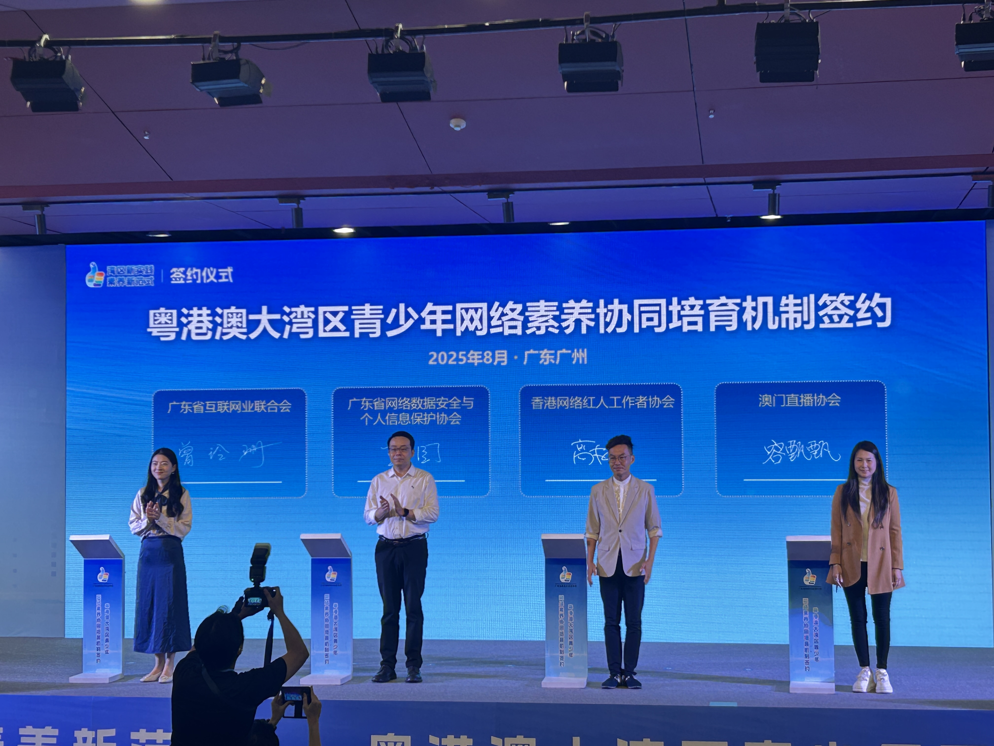 同時,廣東省互聯網業聯合會、廣東省網絡數據安全與個人信息保護協會、香港網絡紅人工作者協會、澳門直播協會共同簽訂了《粵港澳大灣區青少年網絡素養協同培育機制》。這是全國首個聚焦青少年網絡素養的區域協作機制,將通過共同開發優質課程、創作健康內容、搭建實踐平台、舉辦主題活動、科學評估成效,多方面提升大灣區青少年科學、文明、安全用網能力,增強數據安全和國家安全意識,增進國家認同。