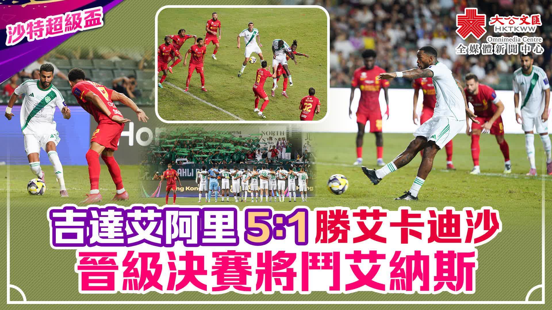大公文匯全媒體報道,沙特超級盃第2場艾卡迪沙對吉達艾阿里今日(20日)上演。比賽開始時,艾卡迪沙雖然於8分鐘先開紀錄,但之後連失4球,加之後衛救球心切誤擺烏龍,艾卡迪沙最終1:5不敵吉達艾阿里。