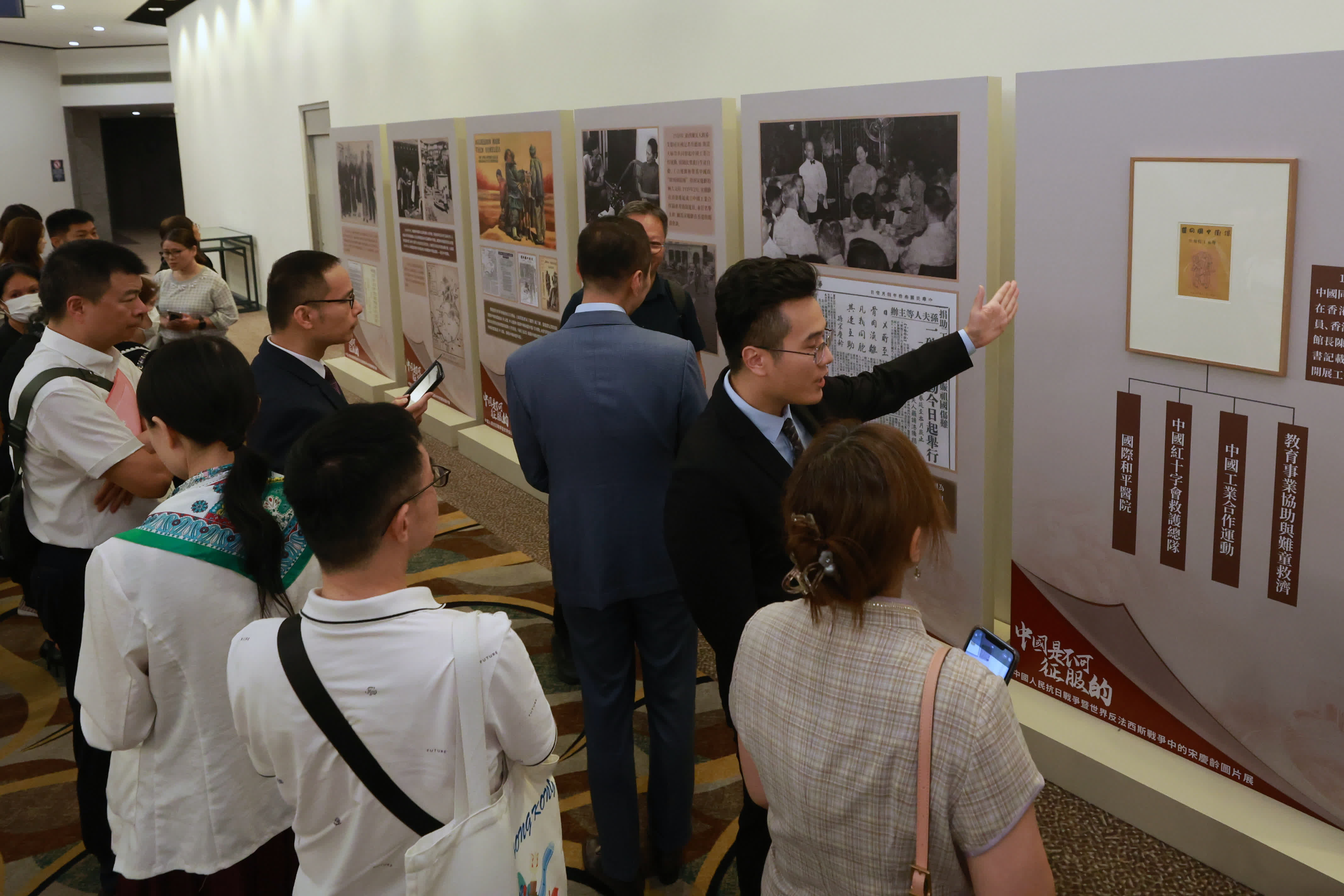 中國福利會副主席張曉敏在致辭時表示,舉行是次圖片展,目的是體現銘記歷史等主題,展現抗戰圖景,弘揚抗戰精神,而香港是中國福利會的事業始發地,有多家香港的機構與中國福利會締結長期友好合作,衷心希望以本次紀念活動為新起點,進一步深化和交流,攜手開啟合作共融新篇章,為增進兩地民眾福祉、推動「一國兩制」行穩致遠貢獻力量。