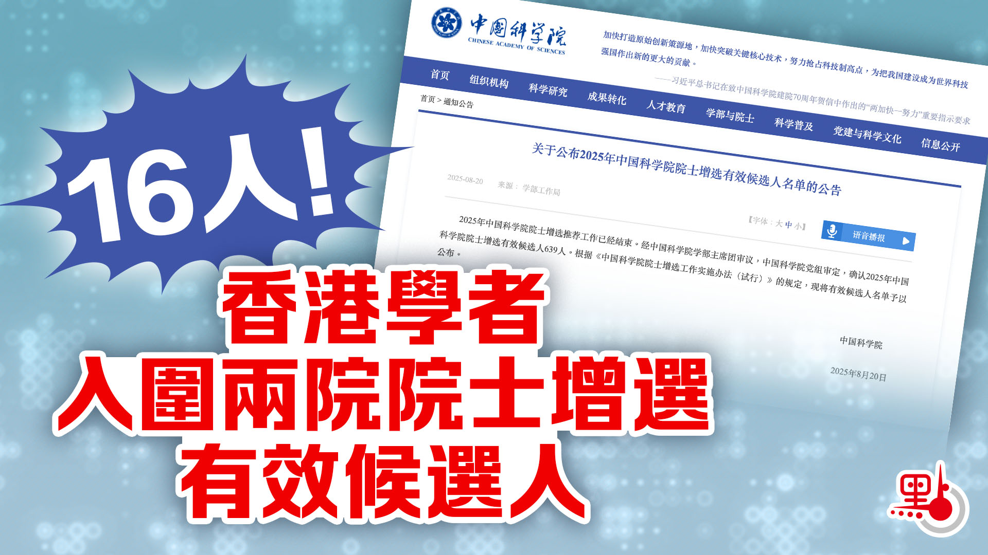 另有2名工程院院士有效候選人來自港校,包括香港中文大學及香港理工大學。
