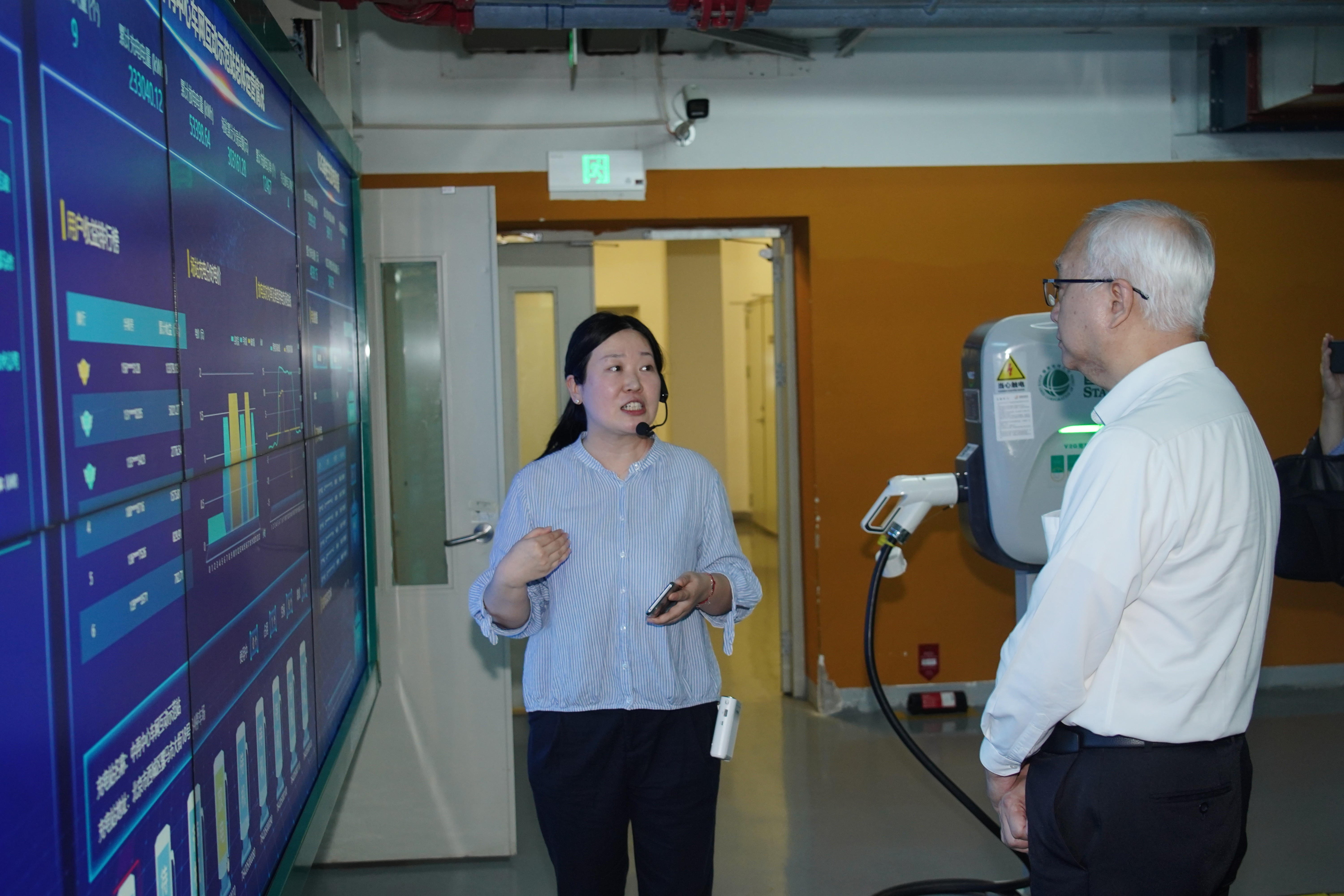 下午,謝展寰到訪國網智慧車聯網技術有限公司,了解國家充電設施監測服務平台。平台目前已與31個省級平台實現了數據縱向貫通,是全國充換電行業數據統計的唯一官方渠道,支撐開展全國高速公路充電設施監測、行業監測和規劃與政策編制。其後,他又參觀中再大廈車網互動示範項目,該項目配備了自主研發的內地首款支持15千瓦功率直流雙向充放電樁,並已被納入國家電網公司源網荷儲互動示範項目。