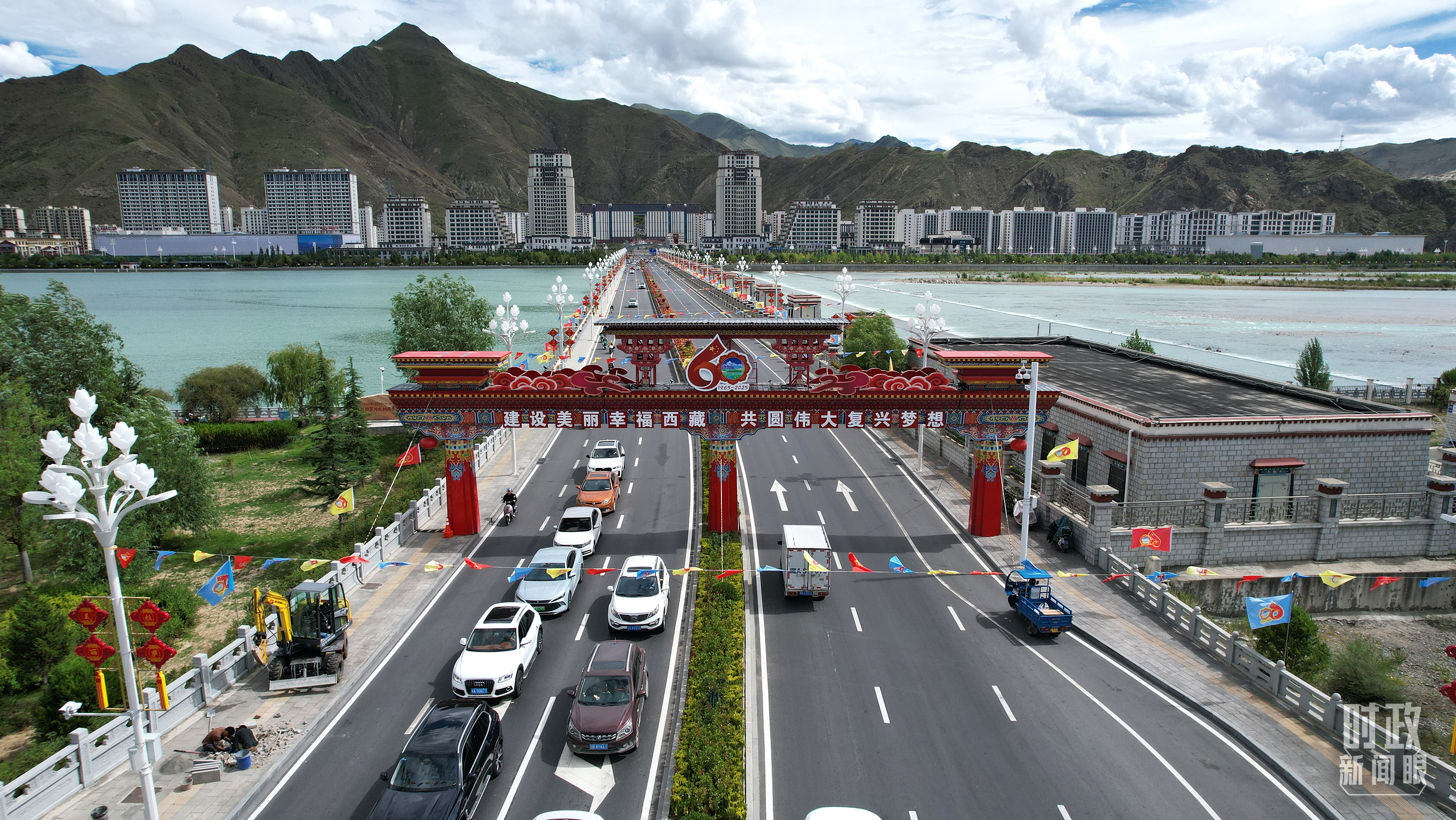 充滿節日氛圍的古城拉薩,從機場到住地主要街道兩旁彩旗舞動,各族群眾手持紅旗、捧着哈達,齊聲歡呼。