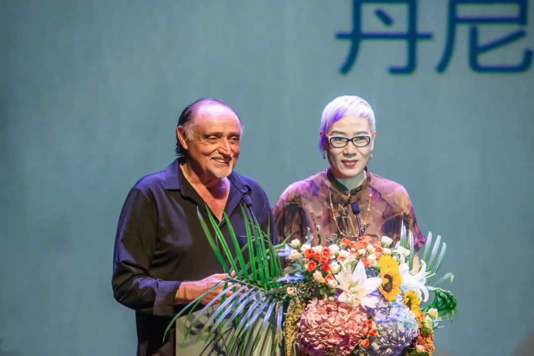 有世界聲譽的法國著名導演丹尼爾•梅斯吉什一個多月以來一直在執導的話劇《南陽關》國際版剛剛首演,本劇由中方導演、當代著名翻譯家和戲劇專家寧春艷翻譯。他登台講道,這對他來說是一個歷史的時刻,在這裏遇到非常多好客深情的南陽人,是專業的又有躬耕精神的人,今晚這個藝術節意義重大,感到了青春型的南陽。他們也去周邊看了曲劇、宛梆等傳統戲曲,想從南陽戲曲傳統經典中汲取營養,做特別好的文化融合,盡量在國際版《南陽關》中把中國傳統戲曲的精髓融入,當然也帶着某種大膽嘗試,這種嘗試來自他是一個外國人,來自巴黎,對中國文化了解需要過程,這個過程給他帶來大膽創新的可能性。今晚大家看的國際版《南陽關》,是在傳統戲曲的架構基礎上有很多後來的改變,希望大家在看戲的過程中能注意到很多細節。因為今晚的戲是主觀和客觀的相遇,有一點戲中戲的感覺,有的戲是在人的頭腦裏發生。劇中的老南陽人,他被這個隋唐故事一直激活着,他腦海中的很多人物呈現在舞台上;還有一個小南陽人代表中國當代青年的理性思維,他們是一個人,中國古代的故事通過他們的視角呈現在舞台上。