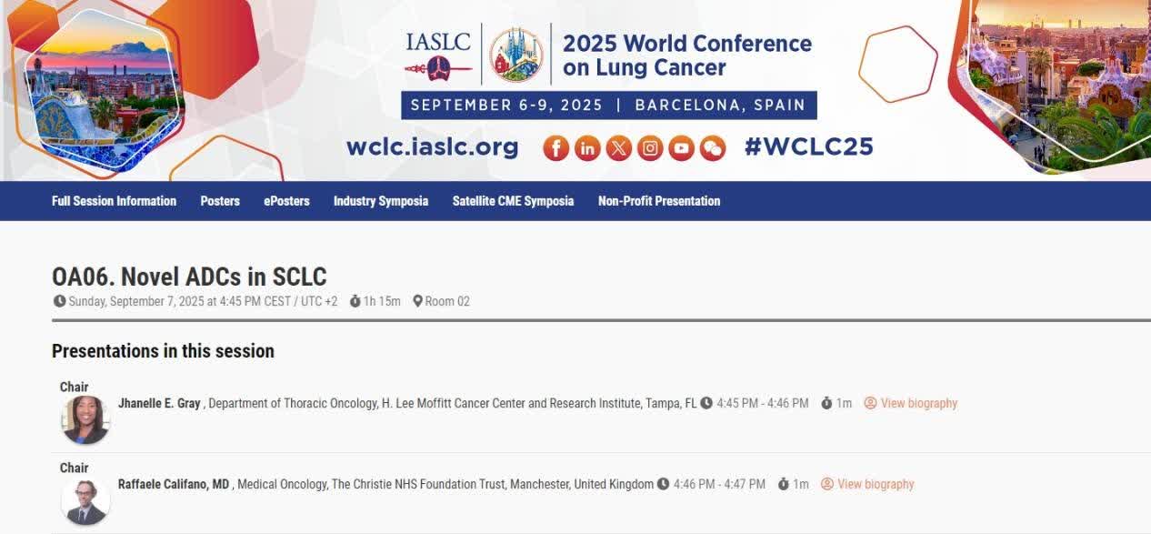 2025年世界肺癌大會(WCLC)將於9月初開幕,齊魯製藥B7-H3ADC創新藥QLC5508(MHB088C)I期臨床試驗廣泛期小細胞肺癌患者的更新數據研究結果作為最新突破性摘要(LBA)入選大會口頭報告。國際肺癌研究協會(IASLC)理事會2025-2027屆主席、同濟大學附屬東方醫院周彩存教授將於巴塞羅那當地時間9月7日下午在「小細胞肺癌ADC新藥」專場進行QLC5508(MHB088C)的口頭報告。