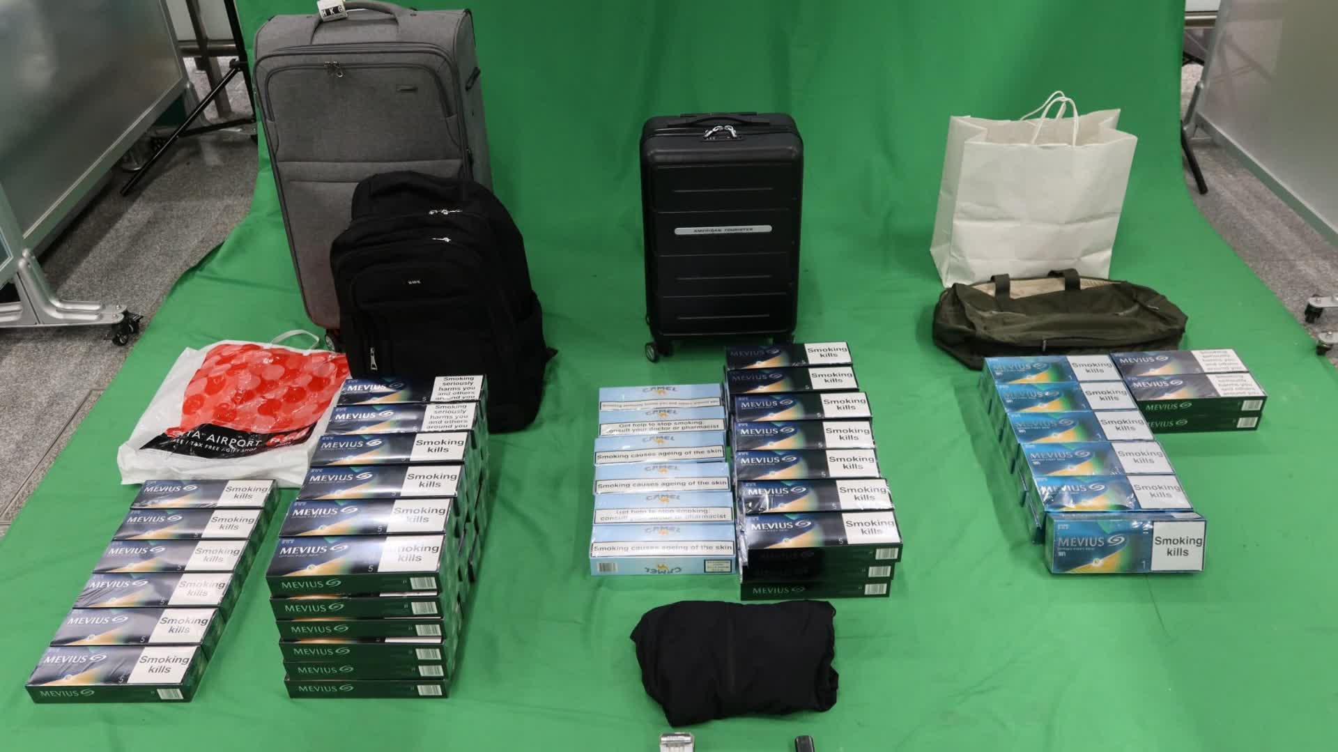 其次,香港海關人員於八月十五日在香園圍管制站截查一名五十九歲的抵港女旅客,並在她的個人行李內檢獲三千一百八十一支未完稅香煙,市值共約港幣一萬四千三百元,應課稅值共約港幣一萬零五百元。該名旅客隨即被捕。
