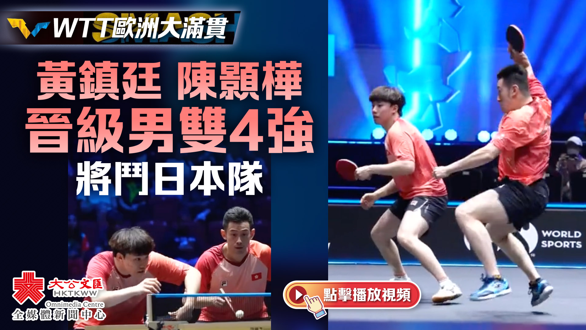 關鍵詞:WTT歐洲大滿貫黃鎮廷陳顥樺港隊乒乓球