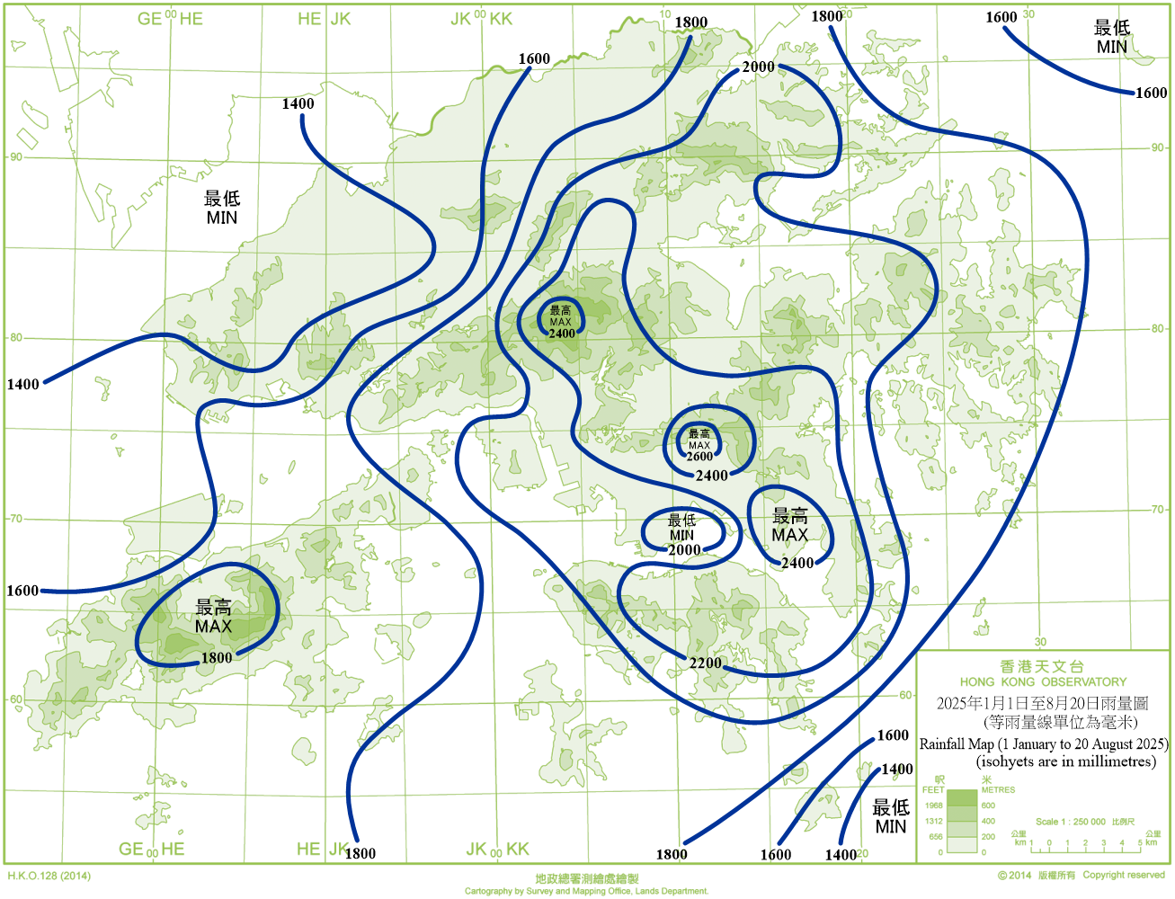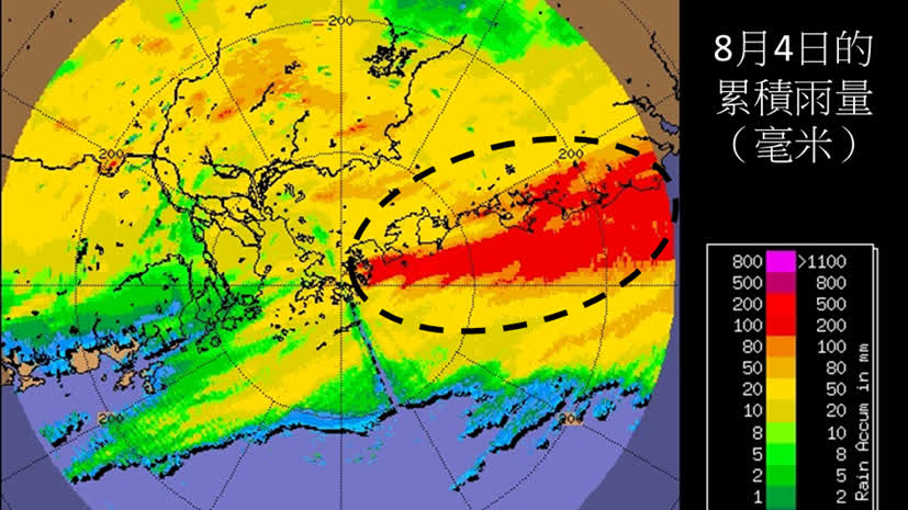 文章指,截至8月20日,本港各區今年的累積雨量分布差別頗大,屯門及元朗區錄得少於1400毫米,而大帽山、大老山附近及香港東南部(包括九龍東、將軍澳及港島東)則超過2200毫米。其中將軍澳錄得2503.0毫米累積雨量,而慈雲山、大老山及大帽山更分別錄得2608.0、2563.0及2517.5毫米累積雨量。