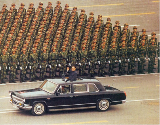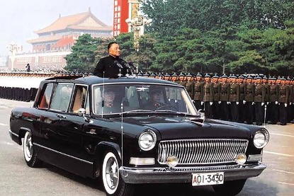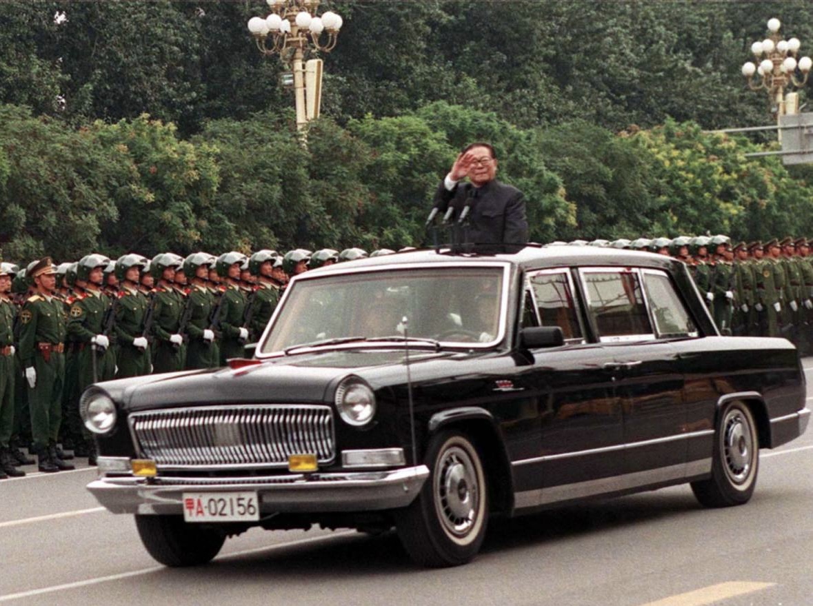 1984年10月1日,時任中央軍委主席鄧小平在天安門廣場乘坐紅旗CA770TJ完成了中國改革開放後的首次閱兵。該車長5.99米、寬1.99米,重3噸,當年生產這款檢閱用的敞篷紅旗轎車,有一個至關重要的技術細節要求,就是要安裝一個升降電機,該電機裝配在車輛的踏板下。遇到緊急情況,只要踩一下腳底的按鈕,升降系統就會自動工作。
