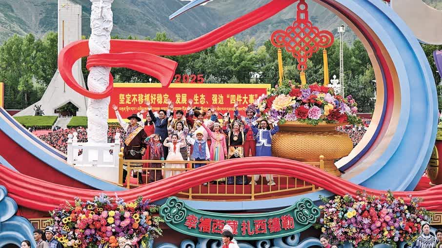 西藏60年的發展是一部從落後走向進步、從封閉走向開放的奮鬥史詩。從1965年到2024年間,地區生產總值增長154倍,公路通車里程突破12萬公里,「復興號」開上高原、5G信號覆蓋珠峰,城鄉居民收入年均增長超8%,人均預期壽命翻倍,15年免費教育全面實施……這些數字背後,是西藏經濟社會全方位跨越式發展的真實寫照;更重要的是,西藏在反分裂鬥爭、民族團結、宗教和順、生態保護等領域取得了歷史性成就。這些成就充分證明只有堅持中國共產黨領導、堅持中國特色社會主義道路、堅持民族區域自治制度,才能實現西藏的繁榮穩定。西藏的實踐深刻揭示出,中國共產黨的領導和社會主義制度是邊疆地區長治久安與繁榮發展的根本保障。