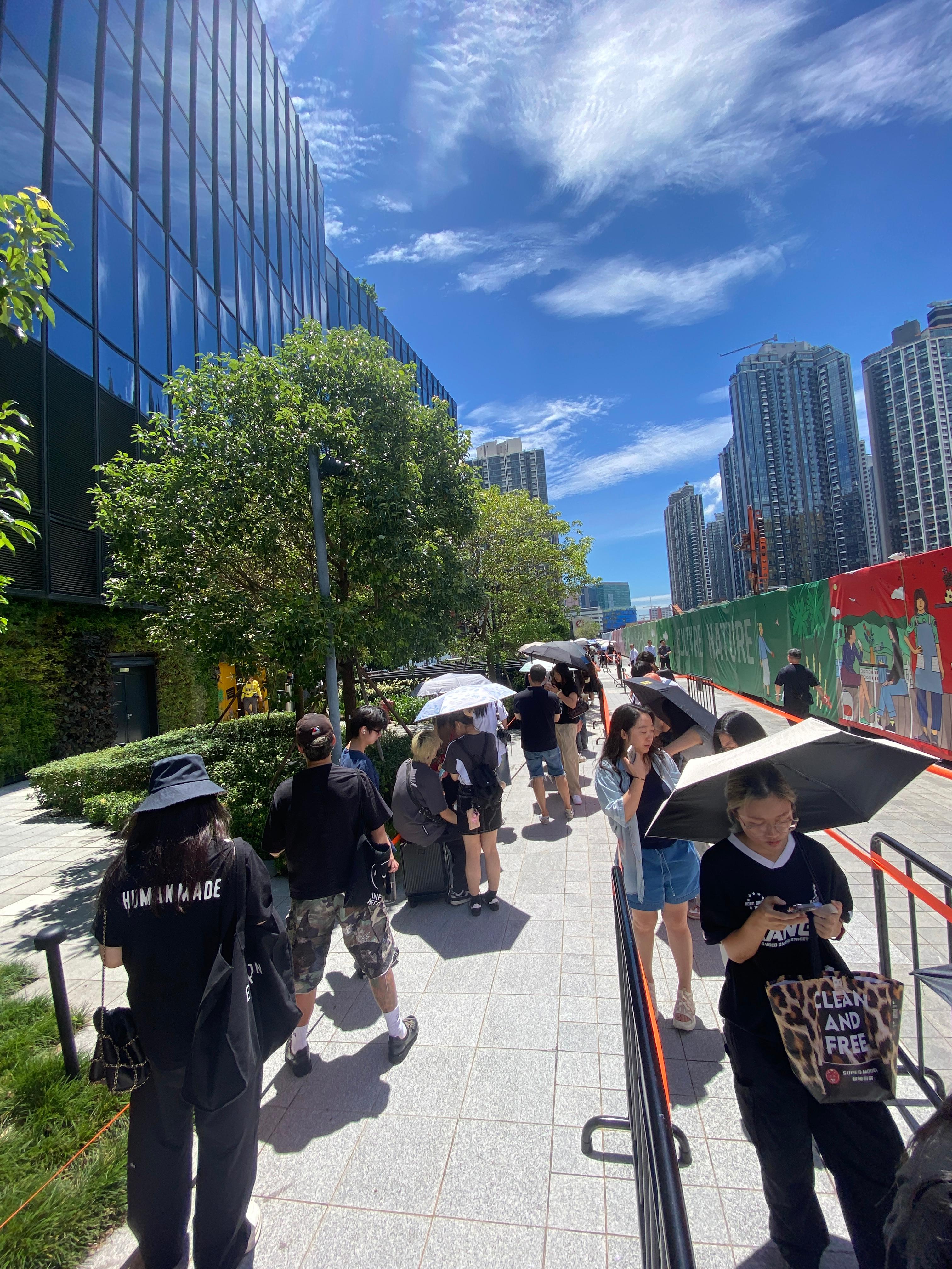 有讀者今日親赴快閃店現場,希望搶購Jennie同款周邊商品。據讀者透露,儘管天氣炎熱,卻絲毫未減粉絲們前來「朝聖」的熱情。現場所見,排隊人龍蜿蜒曲折,形成「打蛇餅」景象,場面十分墟冚。由於陽光猛烈,不少排隊市民紛紛撐起遮陽傘,在烈日下耐心等候。
