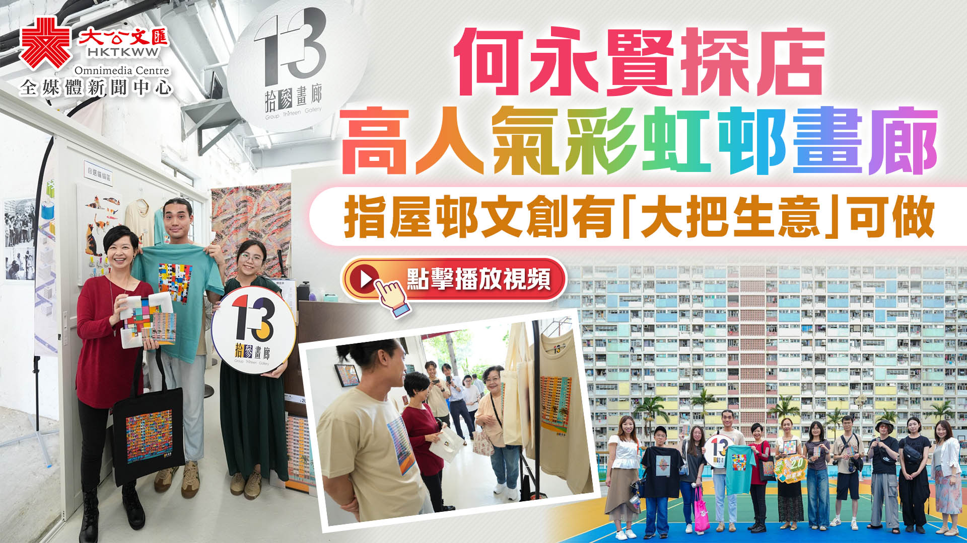房屋局局長何永賢今日(22日)在社媒發文表示,見到彩虹邨為遊客的熱門打卡點,房委會作出調度,同事們花心思在展覽屋邨重建資訊的「彩虹生活館」旁開拓出舖位,將售賣屋邨文創產品、原本位於水泉澳邨的「拾參畫廊」搬到彩虹邨,更好地將該創業計劃與潛在客戶配對。未來,遊客在多彩繽紛的球場拍完相片後,還可到「彩虹生活館」了解屋邨特色,並在旁邊的「拾參畫廊」買屋邨文創產品作為手信。
