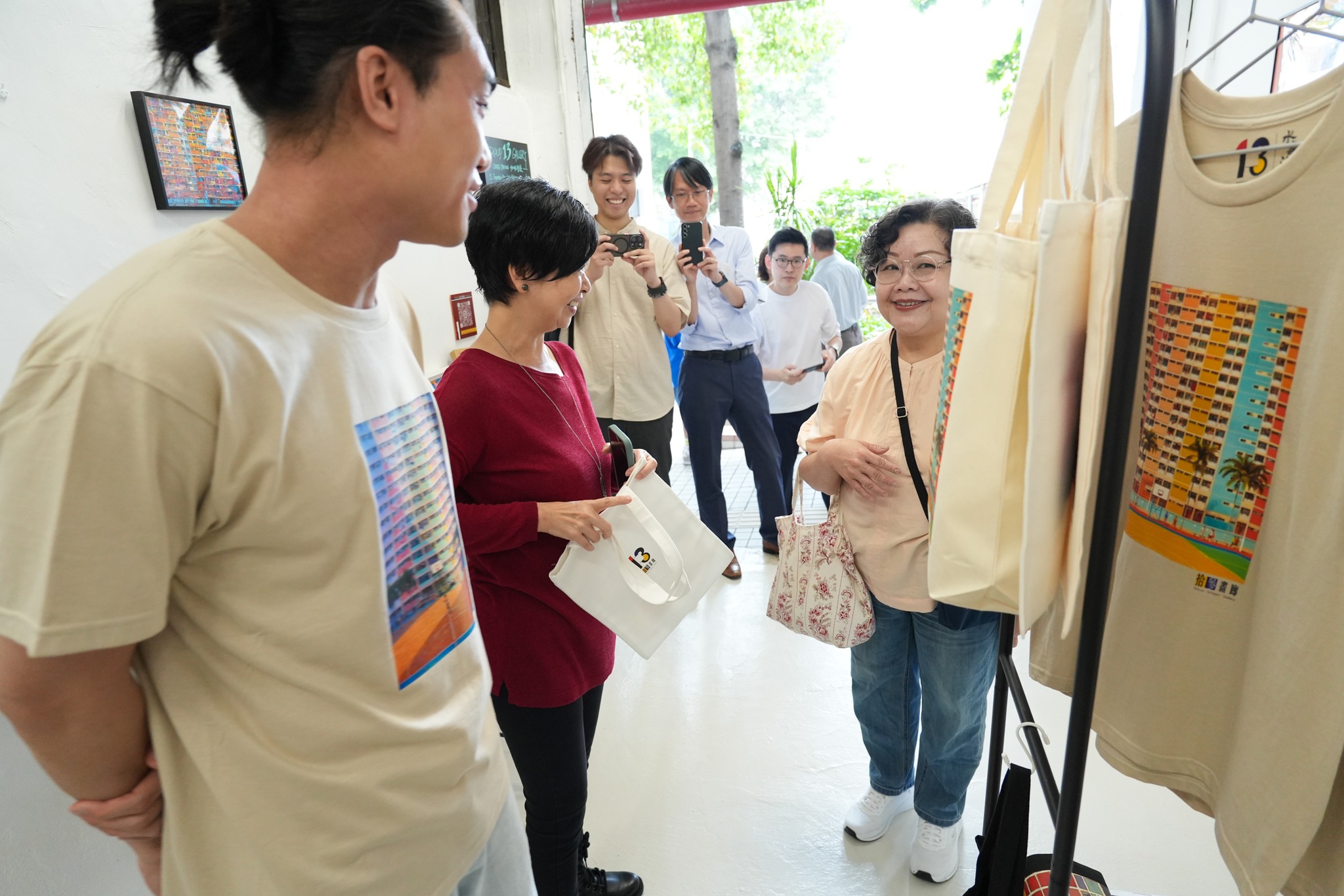何永賢表示,日前和同事前往探店,一系列產品都非常吸引人,有選取屋邨畫作進行印製的T恤,也有大大小小的畫作、帆布袋、磁石貼等,由20多元到數百元的產品都有。在和「拾參畫廊」的兩位年輕人交流時,也建議他們可考慮研發更多產品,如不少女士都喜歡的手巾、絲巾和襪,還有杯墊及收納包等這類產品。在190多條屋邨中,很多都別具風格特色,非常有故事。房屋局鼓勵年輕人多思考設計其他屋邨產品,未來有「大把生意」可做。