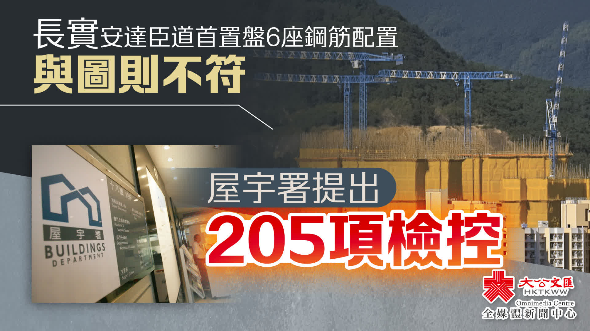屋宇署去年8月接獲舉報,勒令整個地盤停工,並多次派員到地盤核查,結果顯示,6幢大樓均發現部分鋼筋配置嚴重偏離批准圖則的情況,包括一些鋼筋位置與圖則不符或移位、鋼筋粗幼與圖則不符、鋼筋數量比批准圖則少,以及結構柱移位等。