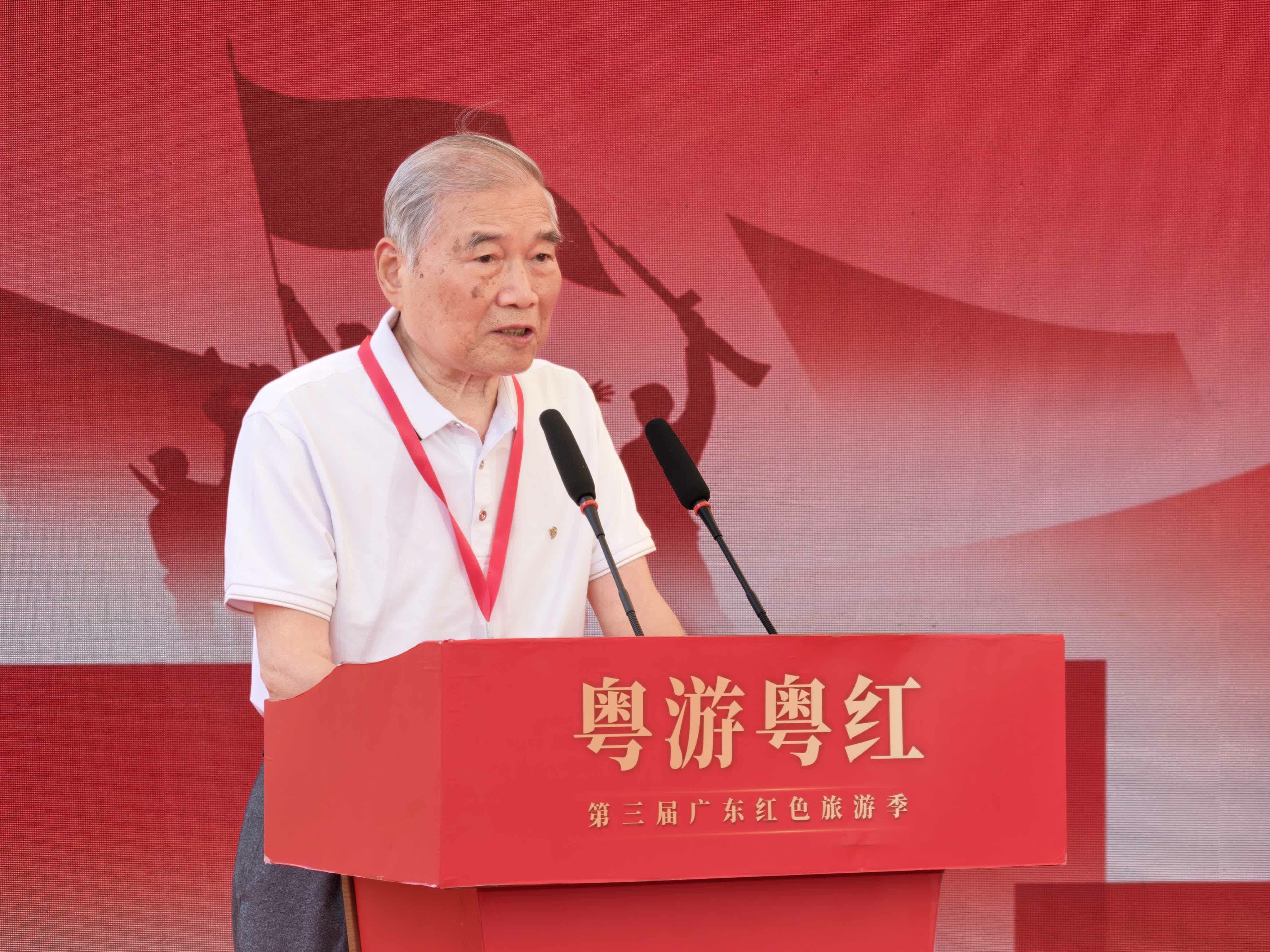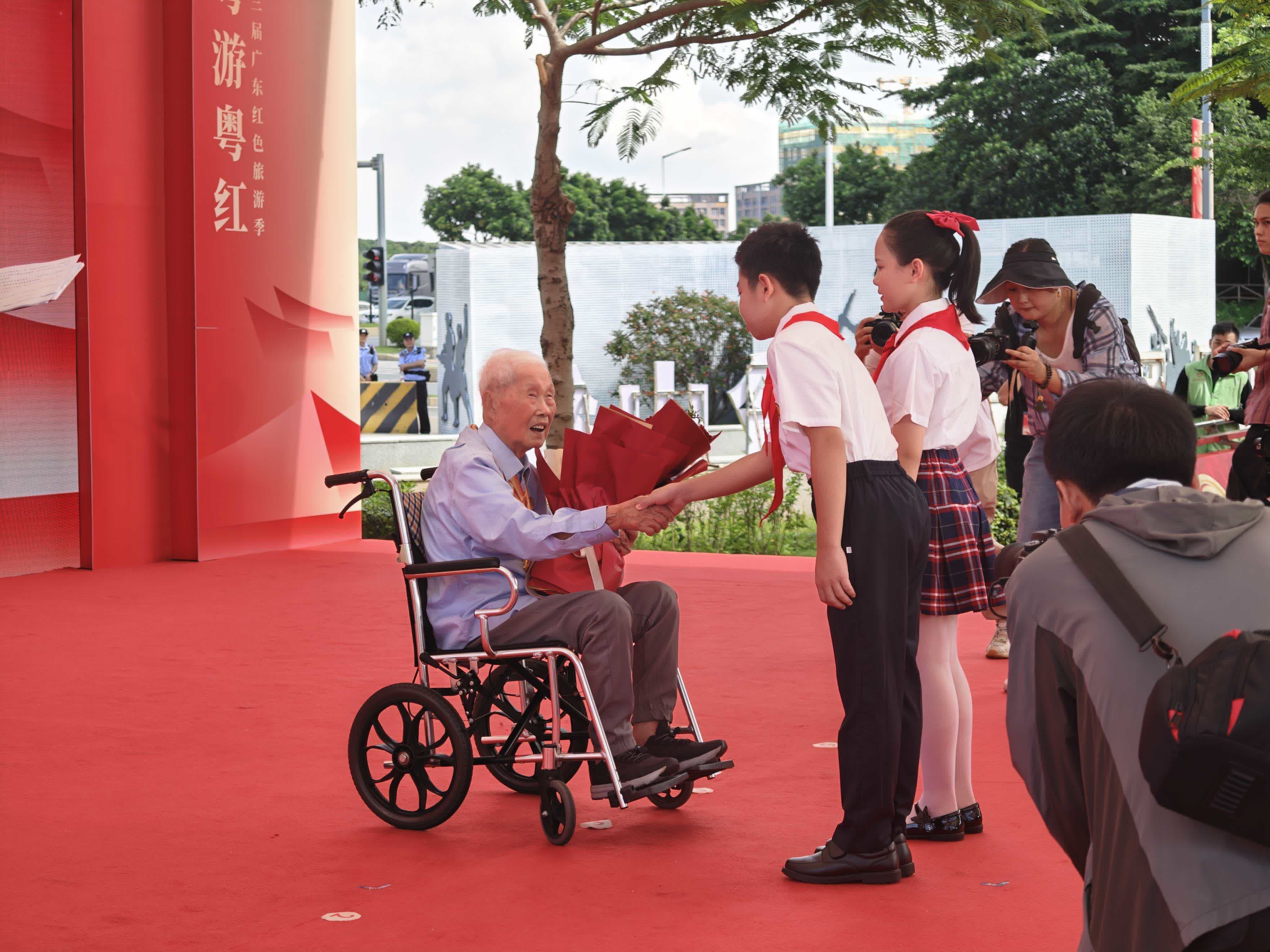 當年逾百歲的東江縱隊抗戰老兵黎洪登上舞台時,全場起立鼓掌致敬,兩名「東縱小戰士」敬獻鮮花,表達對英雄的崇敬之情。1942年,不滿18歲的黎洪在香港加入中國共產黨領導的廣東人民抗日游擊隊港九大隊,更是80多年前「文化名人大營救」的參與者之一。「大嶺山是東江縱隊的搖籃。1940年10月,我的父親曾生率領廣東人民抗日游擊隊第三大隊進入大嶺山,在這裏創建抗日根據地。60年前,父親還親自參與並見證了東江供水工程的開通。「東江縱隊司令員曾生之子曾德平在致辭中分享了父親的故事,他還表示,希望廣東紅色旅遊季這樣的活動讓越來越多港澳青少年了解東江縱隊的抗戰歷史,建立中華民族的自尊。