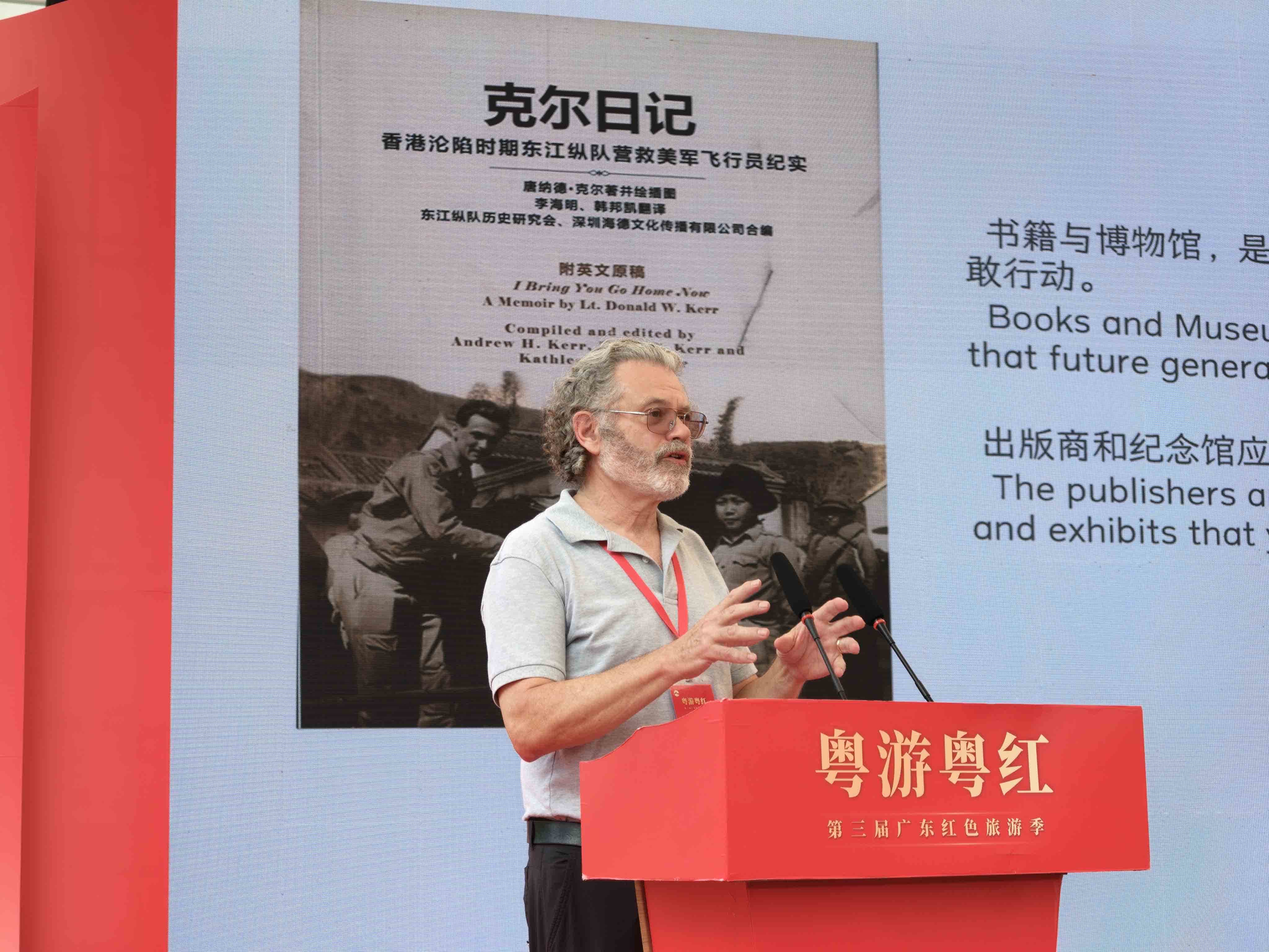 克爾中尉的次子戴維·克爾現場講述了自己父親與東江縱隊的故事:「父親希望我們了解這段歷史,而我們也想把這個故事分享給中國的朋友們,並藉此表達我們的謝意。」戴維·克爾認為,銘記歷史至關重要,正是自己父親獲救的故事以及在中國的抗戰經歷讓他了解到中國人的勇敢、忠誠和堅毅。
