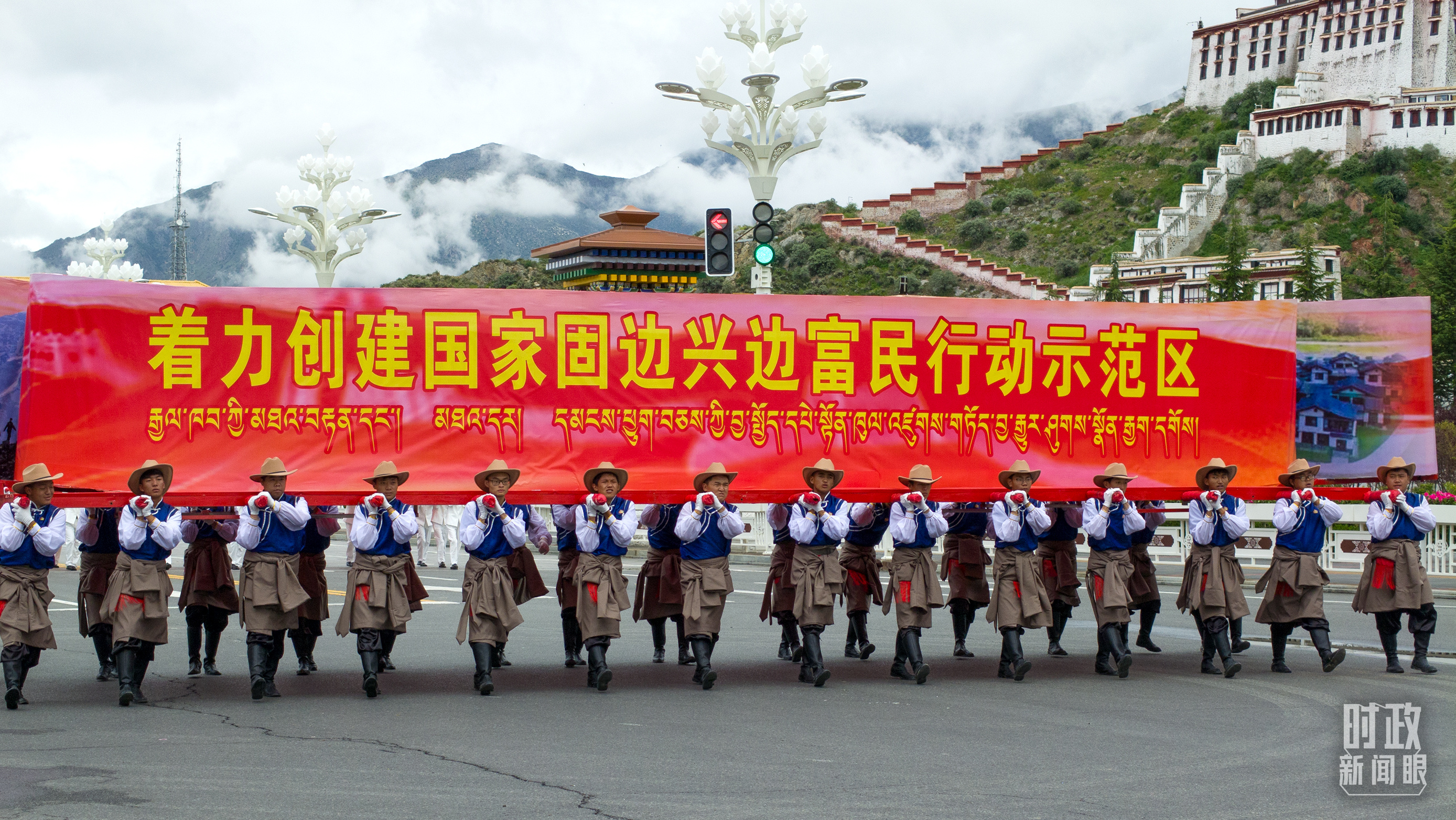 在慶祝大會的群眾遊行環節,「四件大事」單元展示了西藏自治區「四個創建」的奮鬥目標:着力創建全國民族團結進步模範區、着力創建高原經濟高質量發展先行區、着力創建國家生態文明高地、着力創建國家固邊興邊富民行動示範區,分別對應穩定、發展、生態、強邊四件大事。