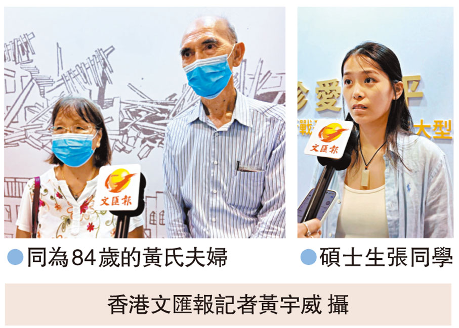 沒有經歷過戰火的一代,參觀是次展覽後,無不心酸,更對今天國家的盛世繁華讚嘆不已,這都是全國人民團結克敵的成果,「我們了解到當時國民經歷了很多苦難,更感恩能有幸活在今天這麼富裕、不用挨餓的社會,我真是非常幸福。」他們二人均希望世界和平,不要再有戰亂,讓全球人民都生活安樂。