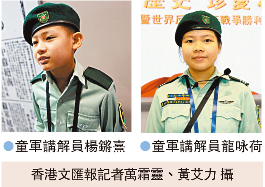 一幀幀發黃的歷史照片、一幅幅抗戰漫畫,讓生於和平盛世時代的童軍楊鏘熹頓時收起爛漫的笑容,眼神多了份超越年齡的沉思。「這是我第一次了解到抗戰歷史,原來是如此沉重,我希望把我的感受分享給更多朋友。」