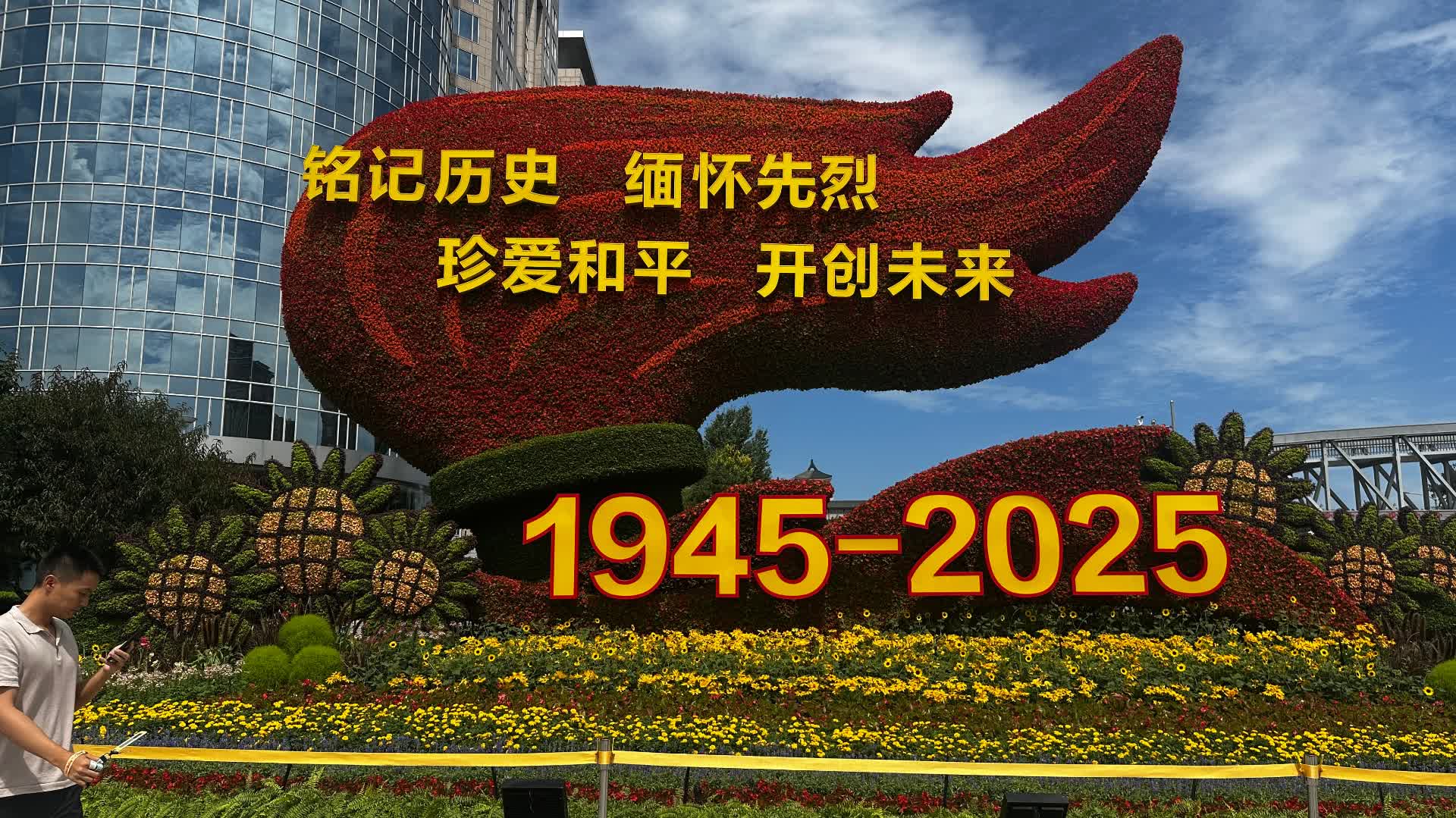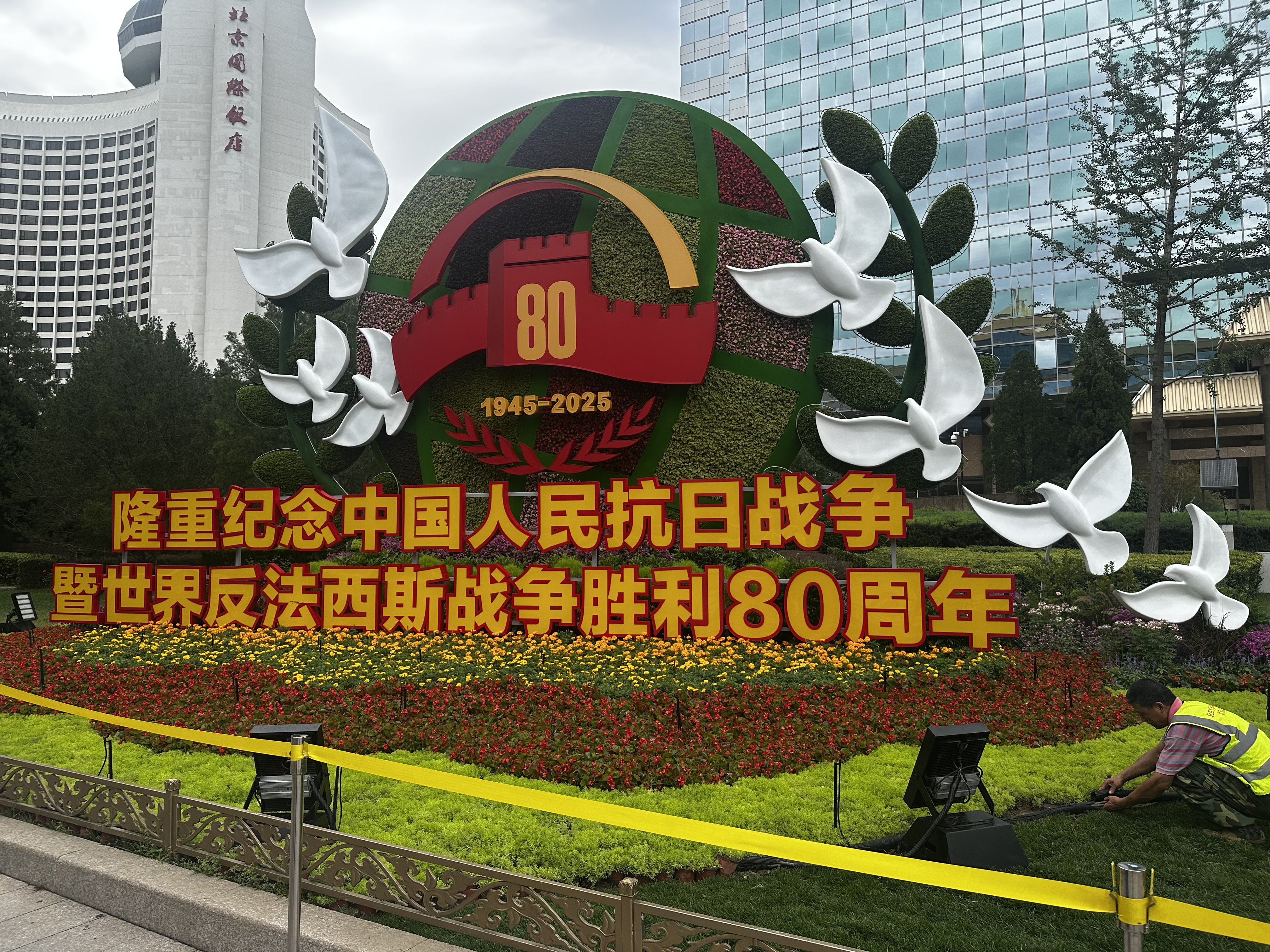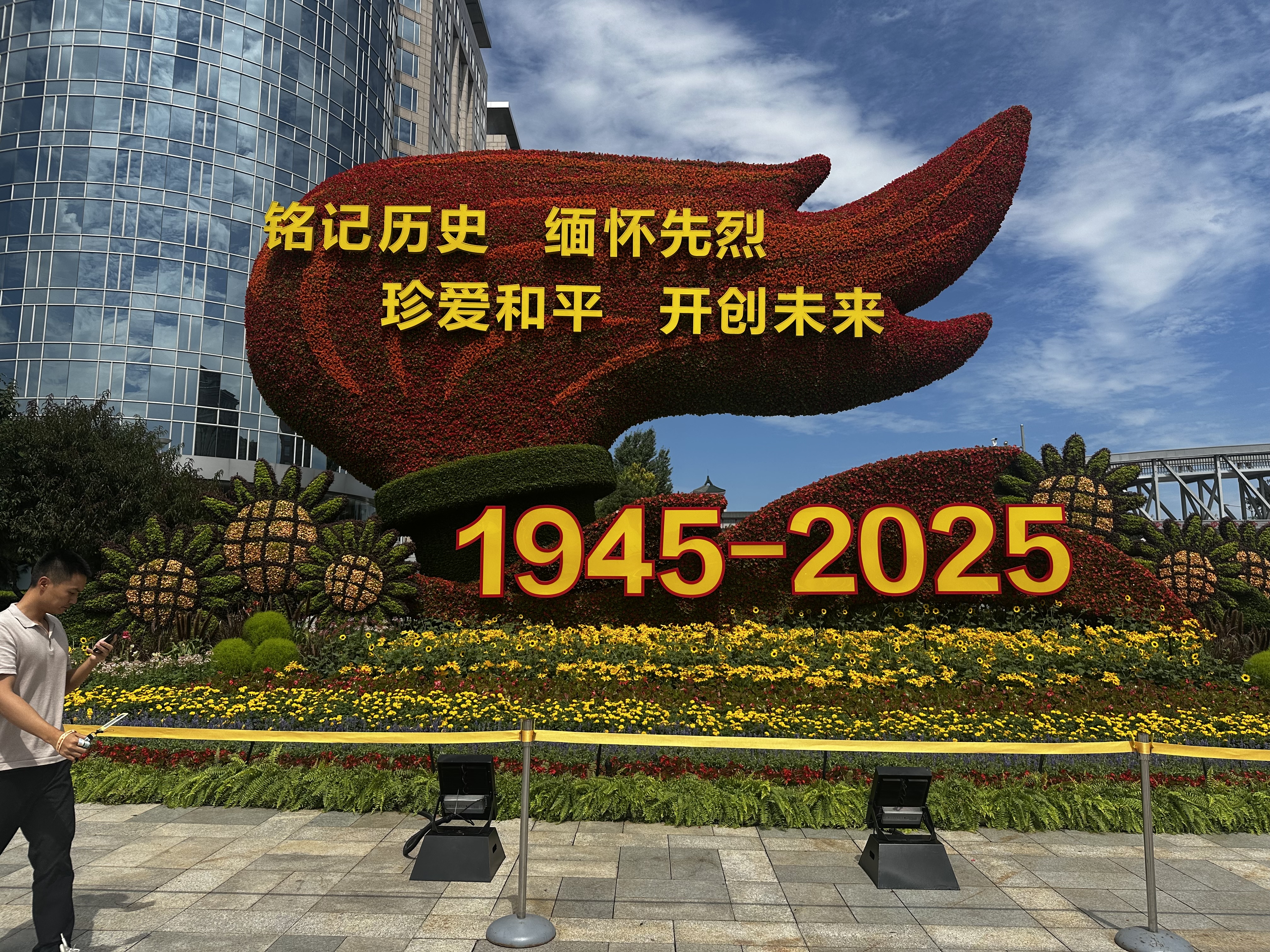 (大公文匯網 記者 蘇雨潤 北京報道)9月3日在北京將舉行盛大閱兵式,紀念中國人民抗日戰爭暨世界反法西斯戰爭勝利80周年。目前,閱兵各項準備已基本完成。記者22日看到,北京城內四處洋溢着深厚的紀念氛圍,在長安街沿線十組為紀念抗戰勝利80周年而搭建的大型主題花壇也已基本完工,吸引了眾多市民遊客駐足觀看、打卡拍照。