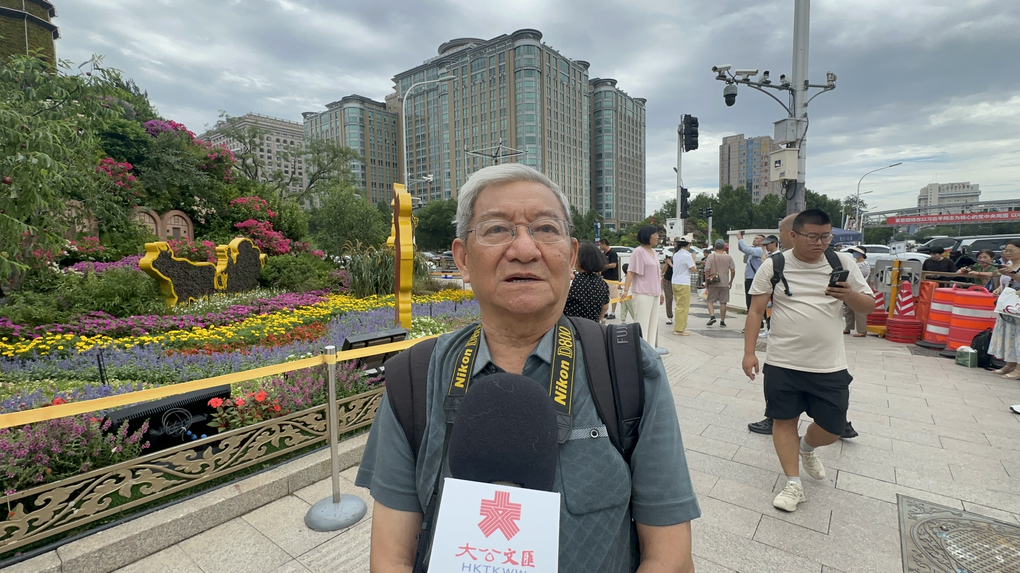 湯先生身跨兩台相機,一路從建國門走到東單,就為挨個拍攝花壇的樣子。他告訴記者,每年他都會來拍攝花壇,通過花壇的變化就能看到國家建設日新月異的發展。例如,位於西單的一座花壇中陳設了「雪龍2號」極地考察船、宇樹機器人等科技元素,代表着中國科技在今年取得了突飛猛進的發展。「花壇中的鮮花訴說着國家的記憶,讓每一位路過的人都能感受到發展的力量,激勵我們銘記歷史、珍惜當下」,他說。