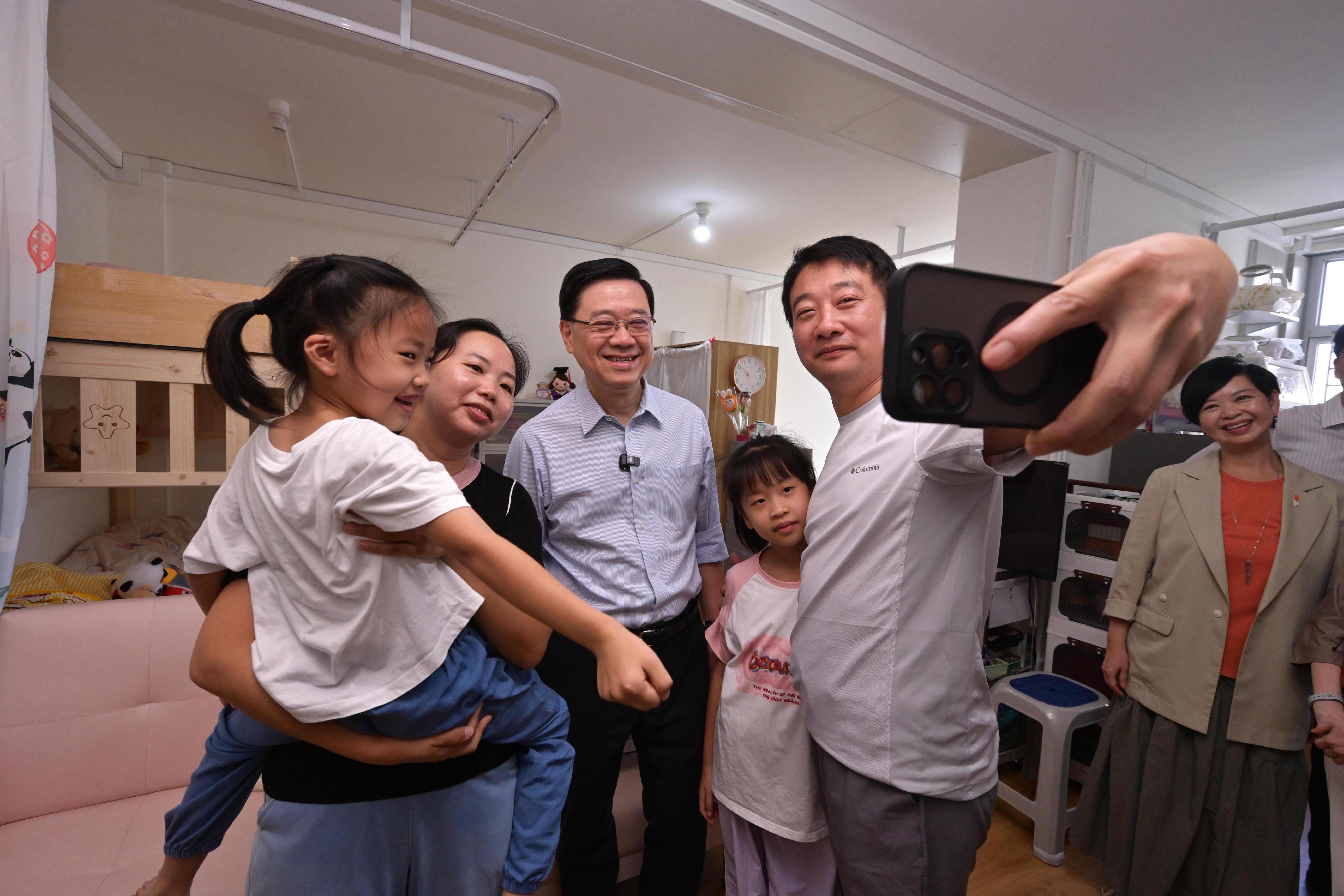 李家超表示,房屋是本屆政府施政的重中之重,政府正提速提效增加公營房屋供應,並創新推出「簡約公屋」。他指出,「簡約公屋」採用「組裝合成」建築法快速興建,全部13個項目的工程陸續開展,首兩個位於攸壆路和彩興路的項目已經入伙。其中高達18層、有升降機的彩興路項目第一期大樓以少於一年半的時間落成,創下香港高層建築的最快興建紀錄。他很高興知道住戶反映居住環境較劏房大幅改善,並期盼項目陸續落成後,可讓更多有迫切住屋需要的市民盡快獲編配適切居所,改善生活質素。