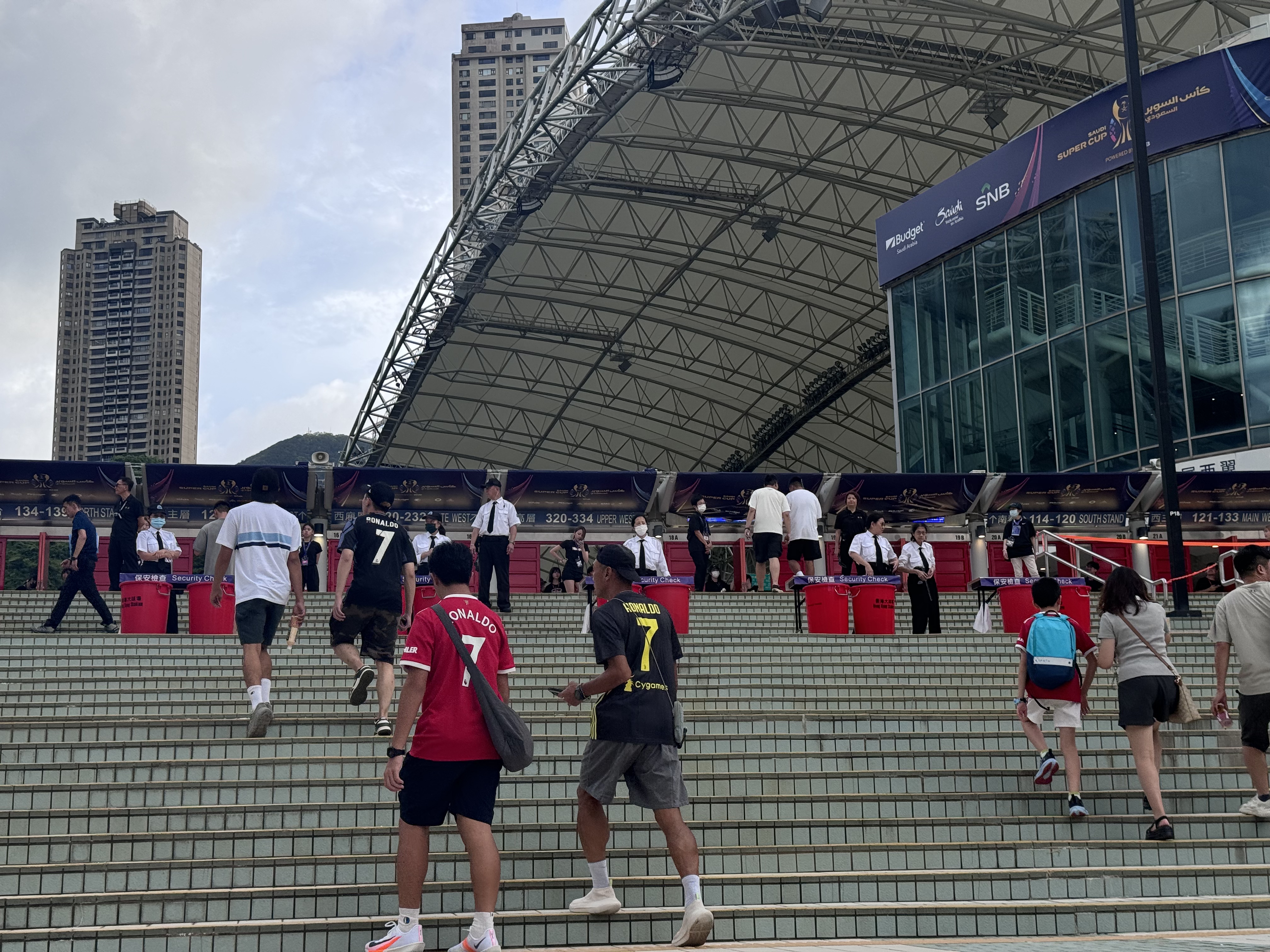 許多球迷身穿心儀隊伍的球衣,提前到場感受比賽氛圍,來自不同地區的球迷們均表示香港體育氛圍熱烈、球場設施完善,以及現場工作人員十分熱心提供幫助,期待未來能引入更多高水平體育賽事,為體育愛好者帶來更多近距離感受頂級比賽的機會。