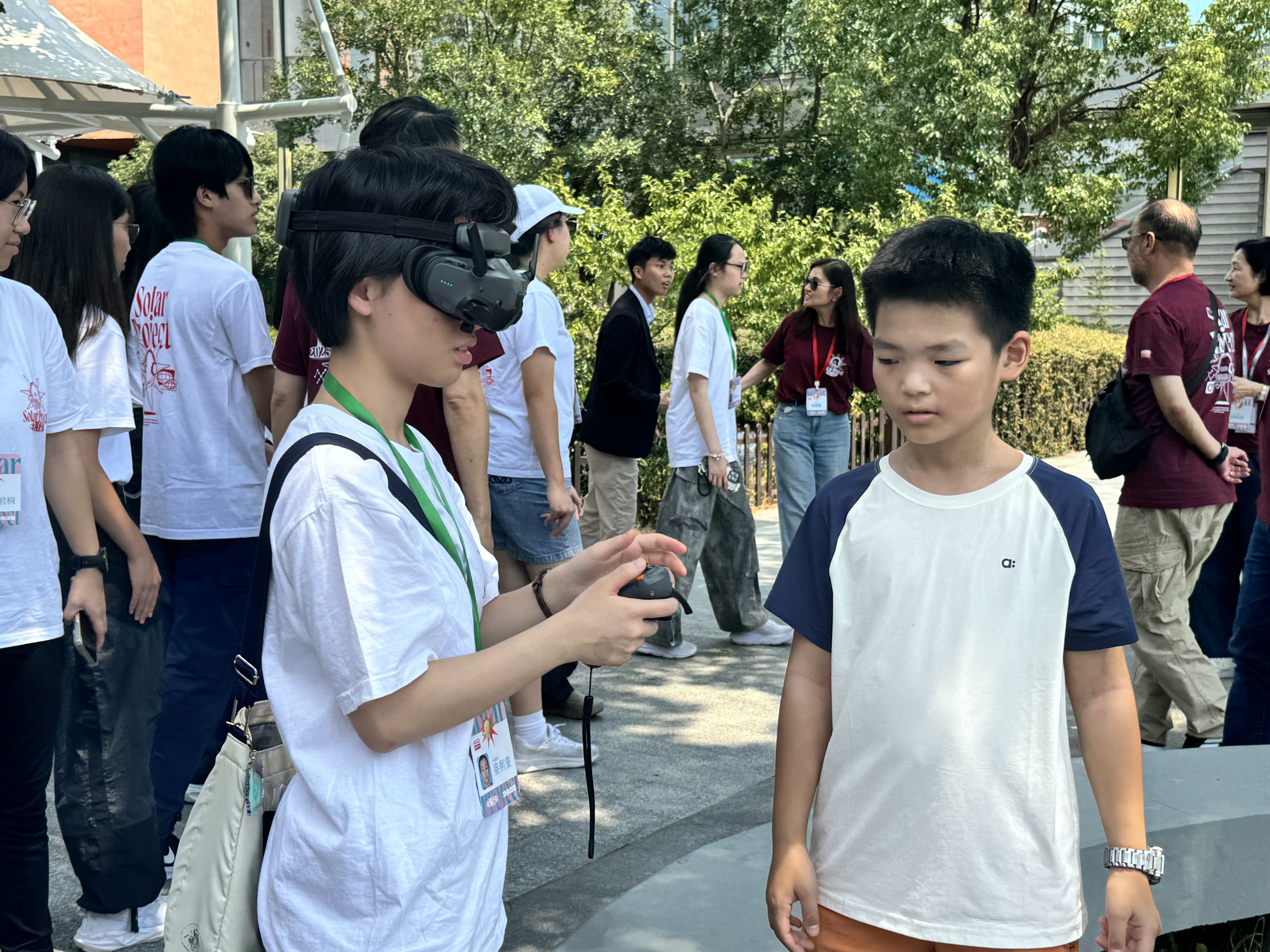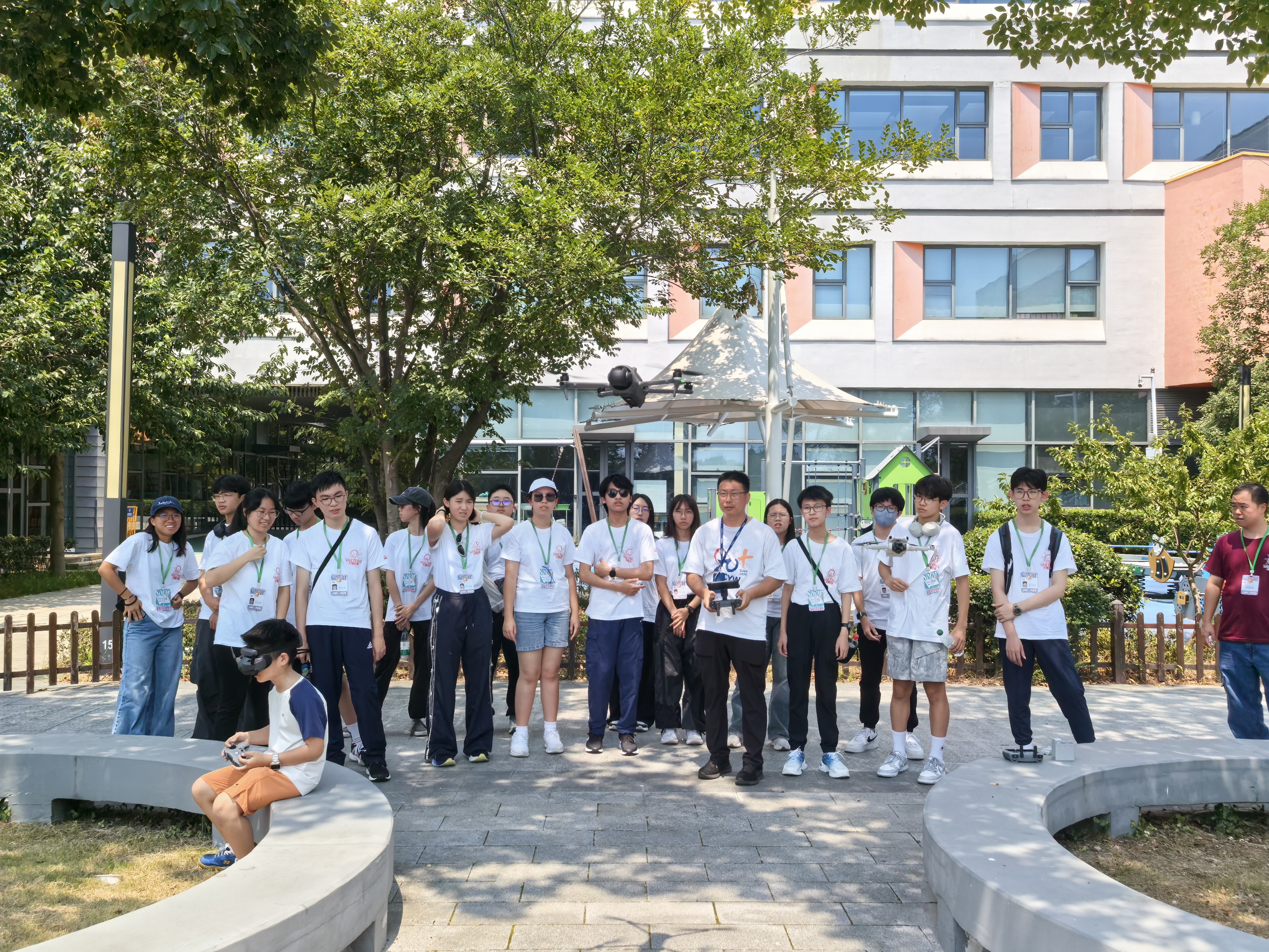在驕陽的照射下,無人機緩緩從塑膠跑道上升起。香港青少年們遙控着無人機飛向校園高處,周邊的區域一覽無餘。「平時在學校裏,我們很難有操縱無人機的體驗,這次我們不但可以親自去操控它,還可以帶上VR眼鏡看到無人機鏡頭裏的實時情況,這很酷,帶給我身臨其境的感受,彷彿我在開飛機一樣。」劉燁說。