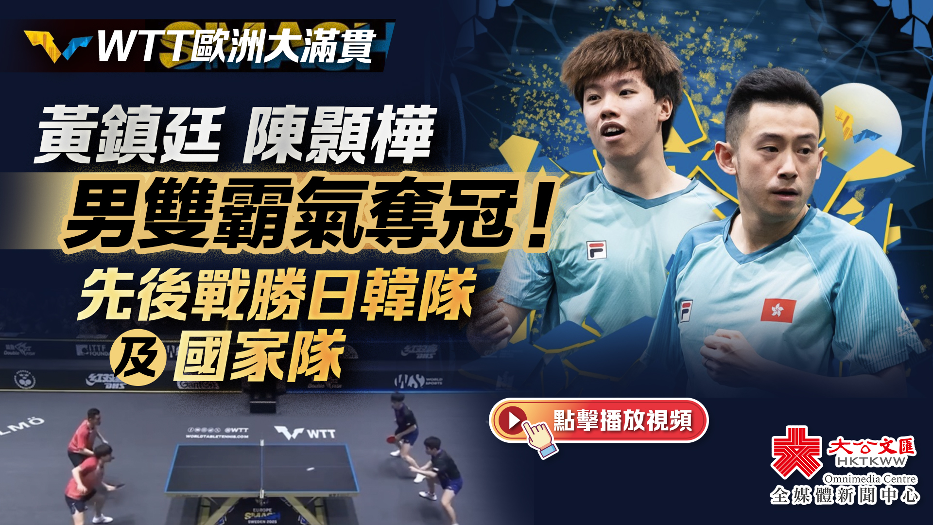 據央視新聞報道,2025WTT歐洲大滿貫瑞典站男雙決賽,中國香港組合黃鎮廷/陳顥樺3-2擊敗林詩棟/黃友政,獲得冠軍。